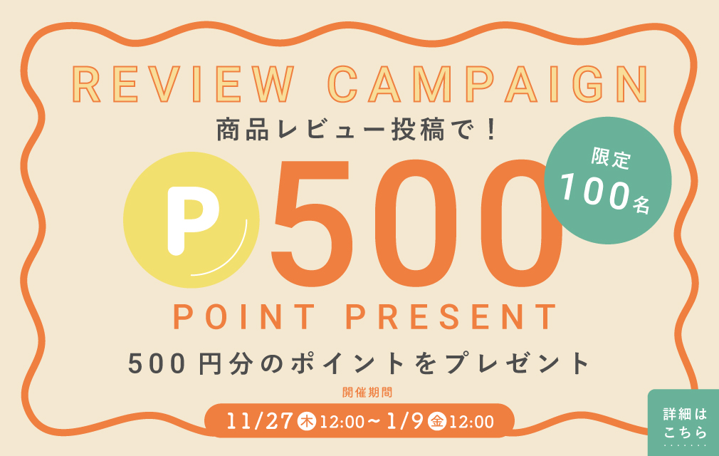 【100名様限定】レビューを書いて、500ポイントをGETしよう♪