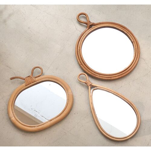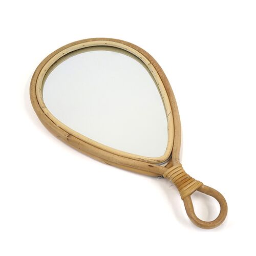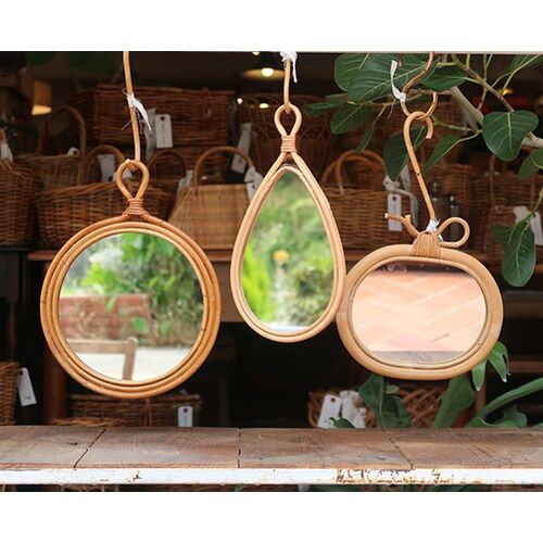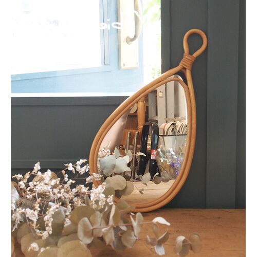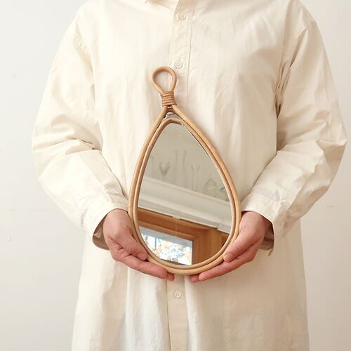 ヴィンテージデザインのドロップミラー。天然素材で作られているアイテムです。手の込んだラタンの組み方がヴィンテージ感を感じさせ、使い込むにつれ色艶が増し、きれいな飴色に変化していきます。経年劣化もラタン家具の醍醐味ですので、お楽しみくださいませ。