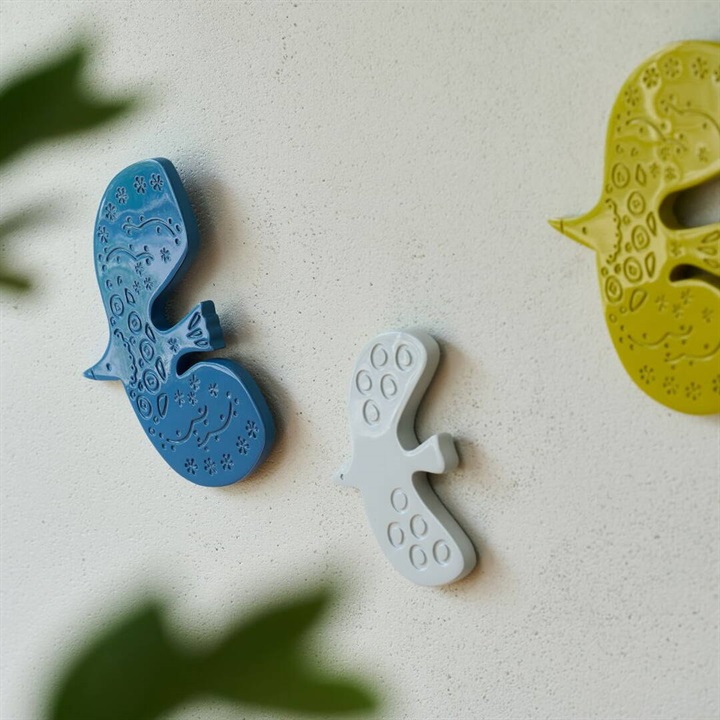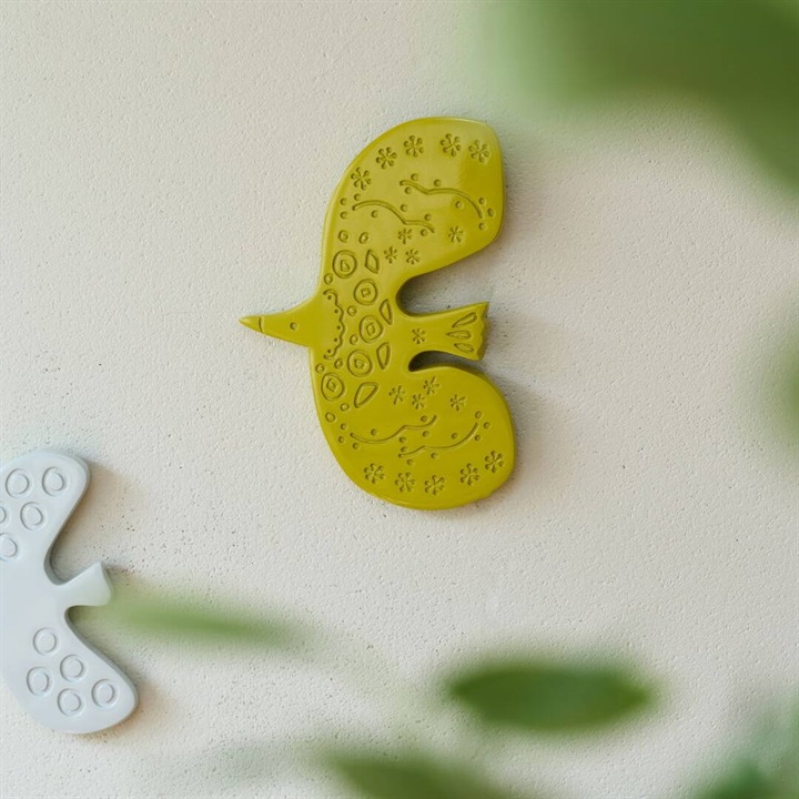 掛ける向きを変えて楽しめるレジンで作られたバードの壁飾り。