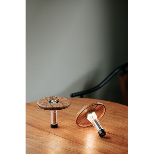 アウトドアギアに溶け込むシェードです。コンパクトなポータブルLEDライト用のシェードです。チークの木目や彫り加工がとても恰好よく、尚且つ軽量でアウトドアスタイルをワンランクアップさせてくれます。お手持ちのポータブルLEDライトの形状をご確認ください。 ▼プレゼント用のラッピングバッグはこちら
