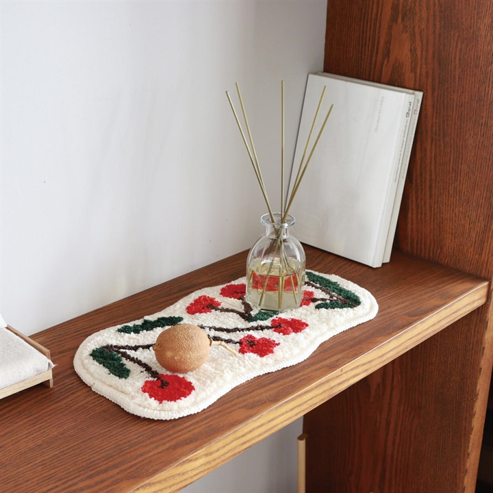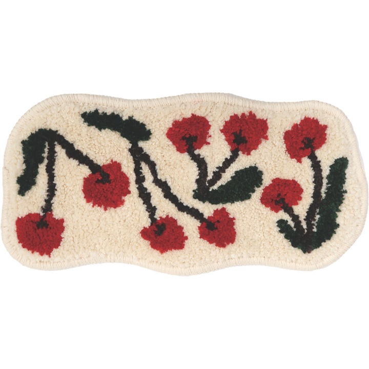 フルーツモチーフのカラフルなフロアマット。玄関で鍵を、お部屋で小物やアクセサリーを、パソコンの前でアームレストとしたり・・・。コンパクトサイズなので自由にお楽しみいただけます。タフト製法で丁寧に仕上げた、ふんわりとした質感が気持ちいい。裏面には滑り止めが付いているので、安心してご使用いただけます。暮らしにさりげない彩りを添えてくれるのでおすすめ。ギフトにもぴったりなアイテムです。