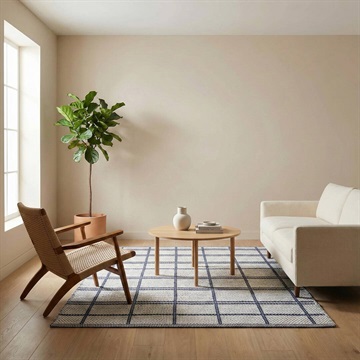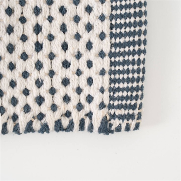 幅広いライフスタイルに寄り添う90×130cmのフロアラグ。リビングテーブルの下や、ベッドに少し挟ませて使うとお部屋のポイントにもなります。1人暮らしや子供部屋にもぴったりです。1年中お使いいただける綿素材を採用しました。落ち着いたカジュアル感と洗練されたモダンテイストを両立したチェック柄。お部屋の雰囲気を垢抜けさせてくれるお洒落なデザインです。ベース地には白にブルーが挟まれており、凝ったデザイン性を感じます。ランダムに入る2本線が、ほどよい抜け感のポイント。 ▼オリジナルラグ制作ストーリーはこちら