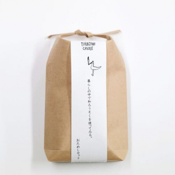 和ろうそくは植物の成長をちょっとずつ分けてもらい材料としています。ろうそくの植物ロウ、芯に使う和紙。自然のめぐみに感謝をしつつ、和ろうそくの灯りで心を健やかに保ってほしいと思います。かわいい米袋に入っているのでプレゼントにもおすすめ! ▼プレゼント用のラッピングバッグはこちら