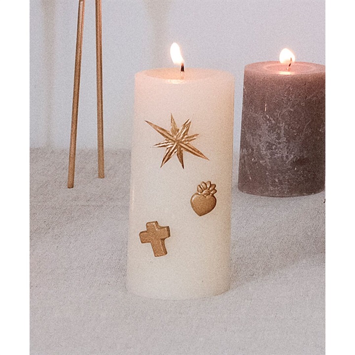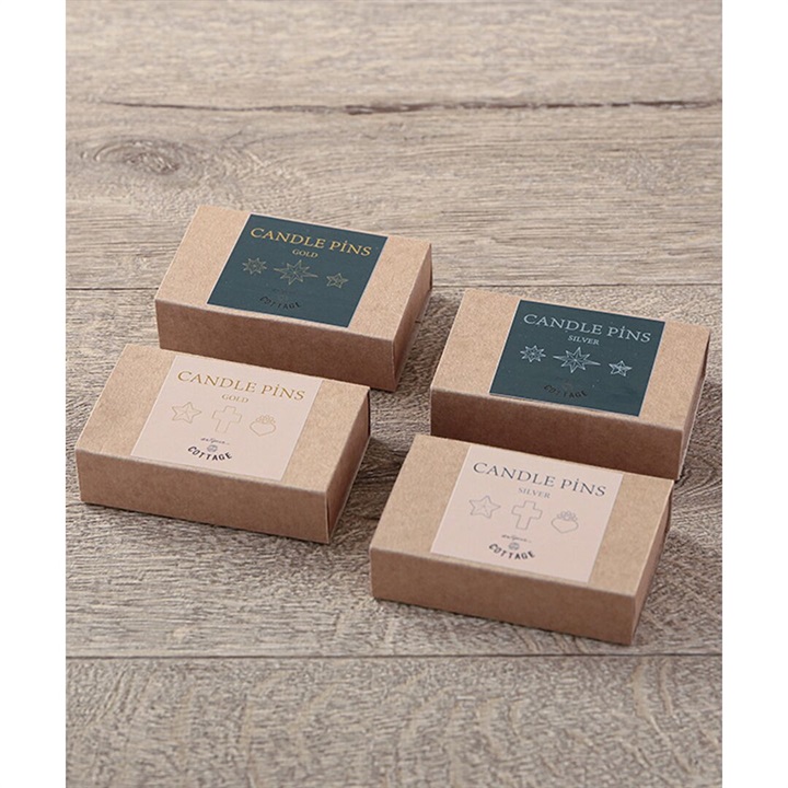 キャンドルを装飾するピンズです。サイズとデザインの異なる3種をセットにしました。ディスプレイ用キャンドルに設置するのもおすすめです。 ▼プレゼント用のラッピングバッグはこちら