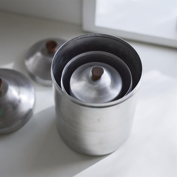 ノスタルジックな雰囲気を漂わせるアルミキャニスターです。