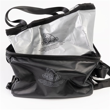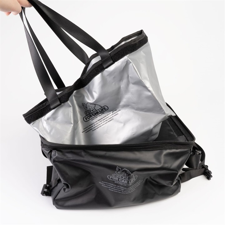 インナーバッグ付のクーラーバッグです。暑い夏のレジャーや大型スーパーには欠かせないクーラーバッグ。見た目にもカジュアルでオシャレなこちらは、機能面も申し分ないです。ファスナーは密閉性のあるものが採用されており、液漏れや雨の侵入を防いでくれます。外側にはポケットが付いており、ストラップも付属しています。蓋を開けた内側にもメッシュポケットがあるので、ここに保冷剤などを入れると、より保冷度がUPします。また、取り外し可能なインナーバッグも付属。こちらは持ち手が付いており、トートバッグの様にしてお使いいただけます。本体部分とはマジックテープで接着されているので、つけ外しが楽々。ポリ製なので使わないときは潰しておけるのも嬉しいポイント。サイドのバックルを止めるとさらに小さくすることができます。 ▼プレゼント用のラッピングバッグはこちら