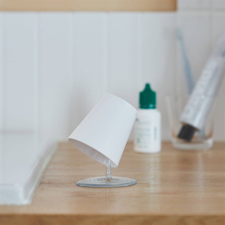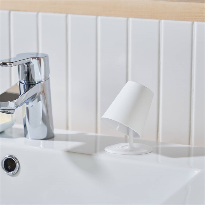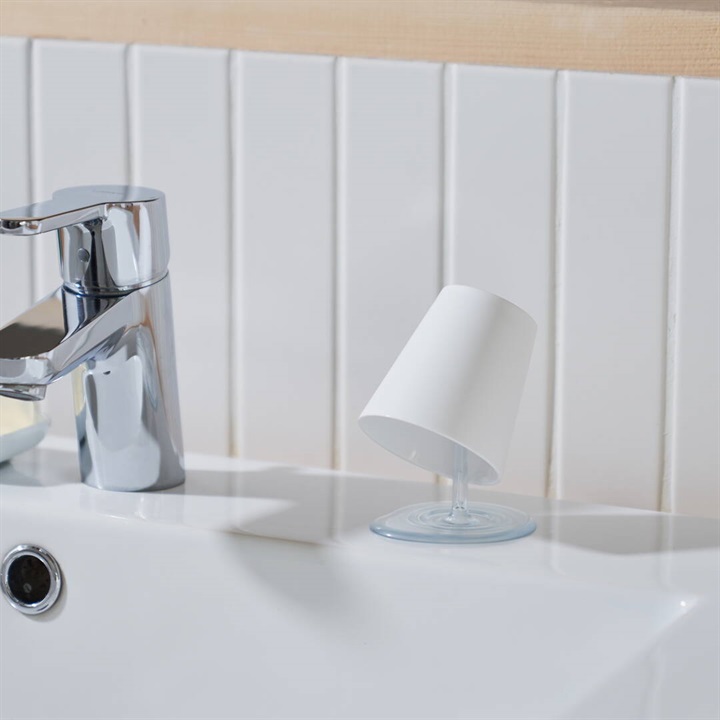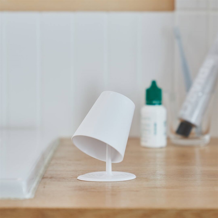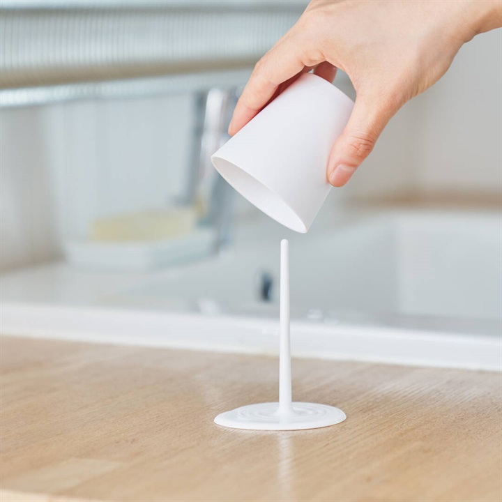 スタンドに被せると斜めに傾くようにコップの底面が設計されており、スタンドをつたって衛生的に使用できます。