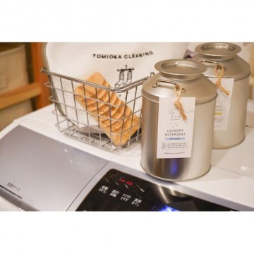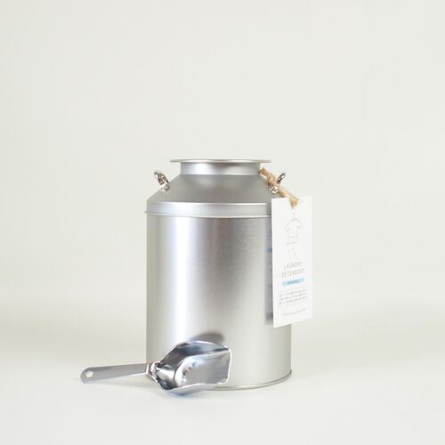 ミルク缶に詰めたおしゃれな洗剤で、環境にも衣類にも優しい仕様です。