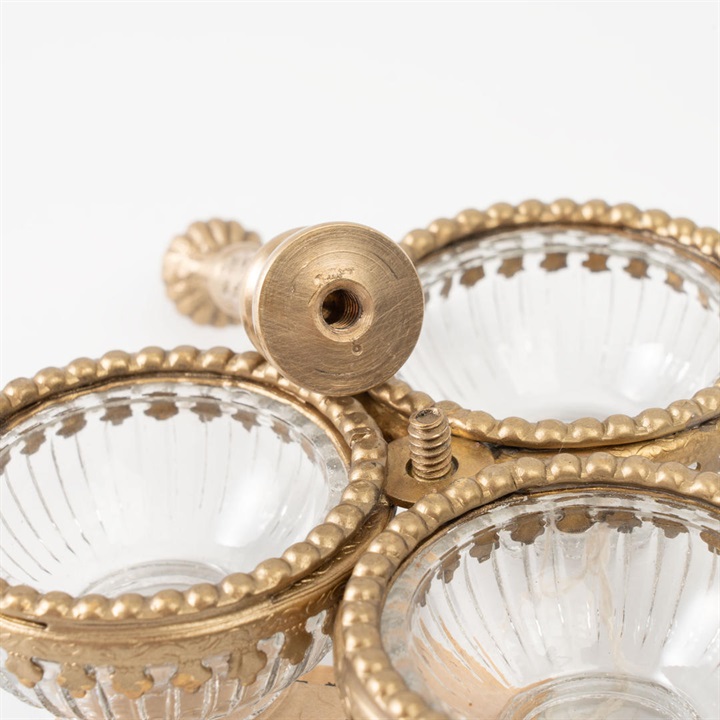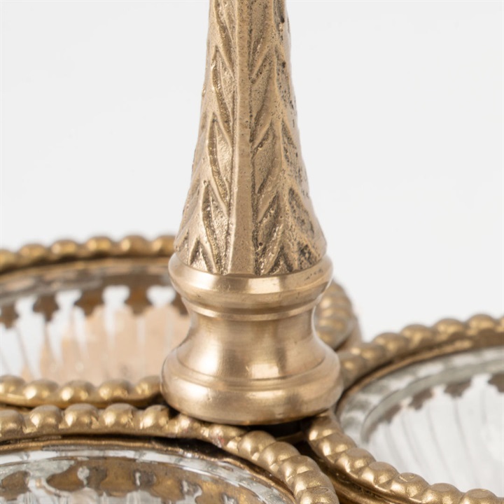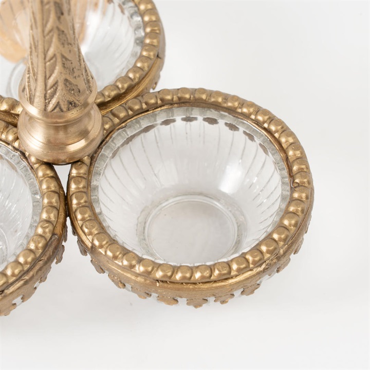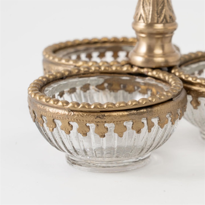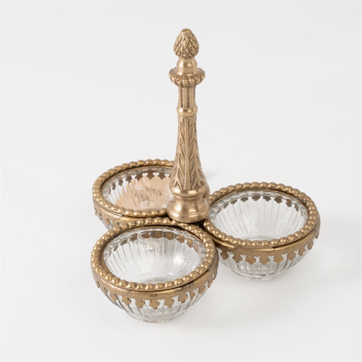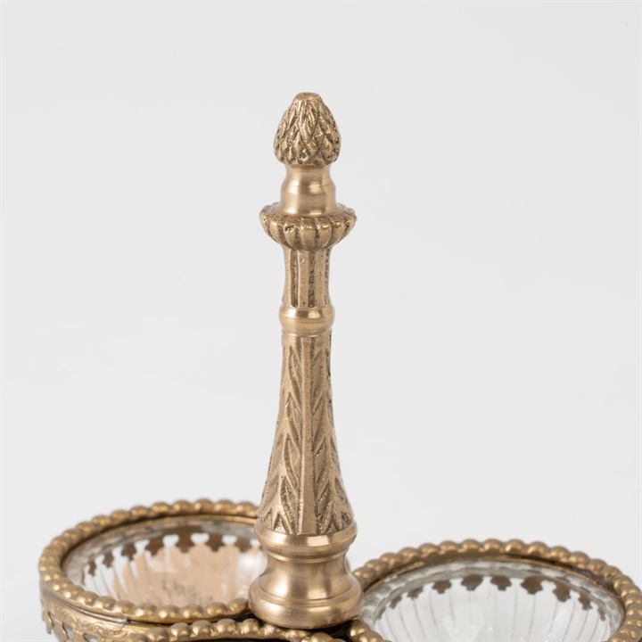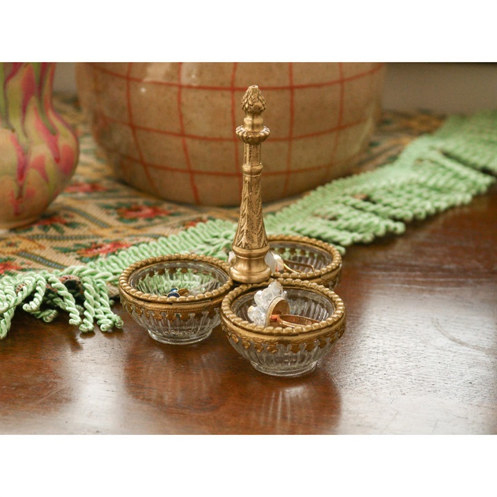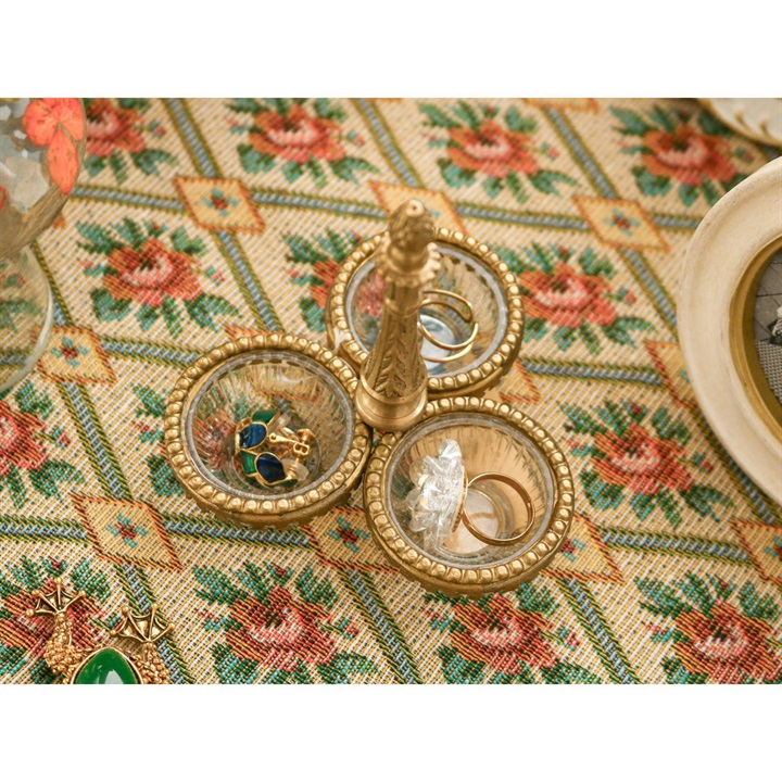 レトロな雰囲気が素敵なガラスプレート。光沢を抑えたゴールドのラインが、程よい存在感を与えてくれます。繊細なモチーフのデザインで華やかさもあるアイテムです。3つに分かれているので、指輪やピアスなどの種類で分けることができます。