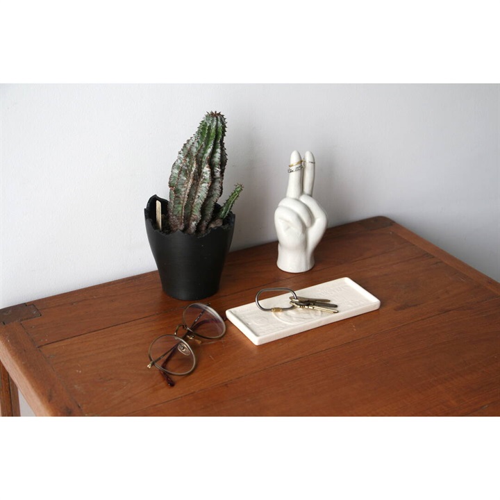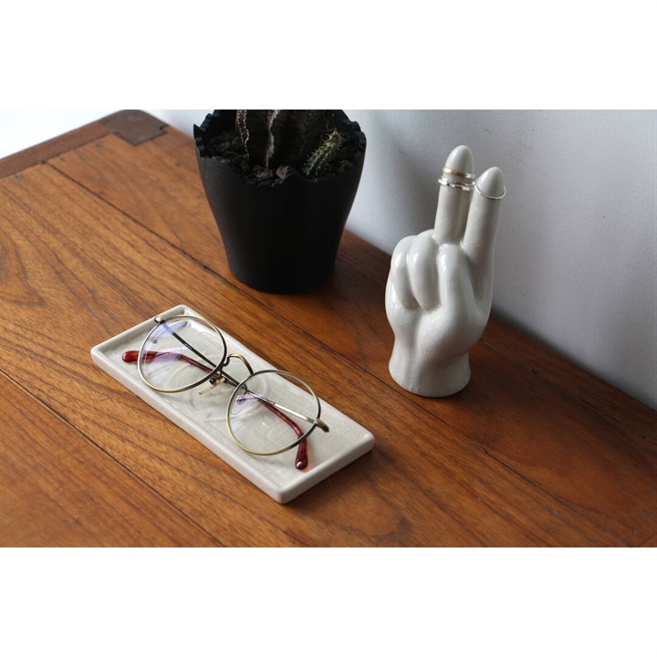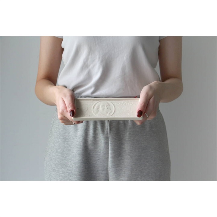 100ドル札がデザインされた、クールなトレイ。細かいひび割れのようなクラック(貫入)仕上げがお洒落です。マネートレー、キーリング、ジュエリー、メガネ置き等、存在感のあるデザインは様々なシーンでマッチします。サイドに穴があるので、インセンススタンドとしても使用できます。貫入とは陶器の釉薬に生じる自然なひび模様。自然に生まれる模様は一つとして同じものはなく、独特の表情を与えます。また、釉薬の層に奥行が強調され、独特な透明感のある美しい仕上がりになります。