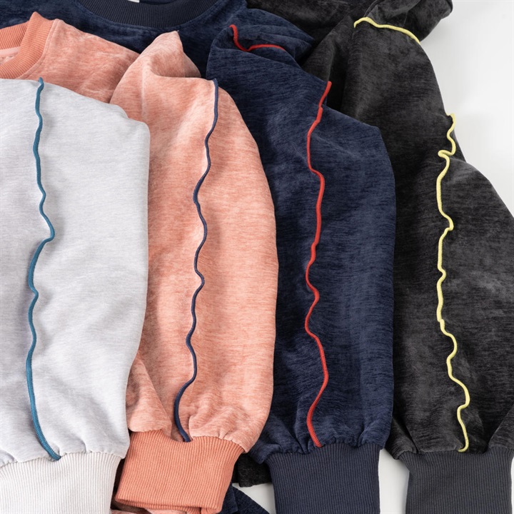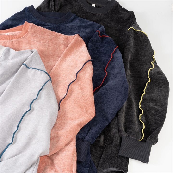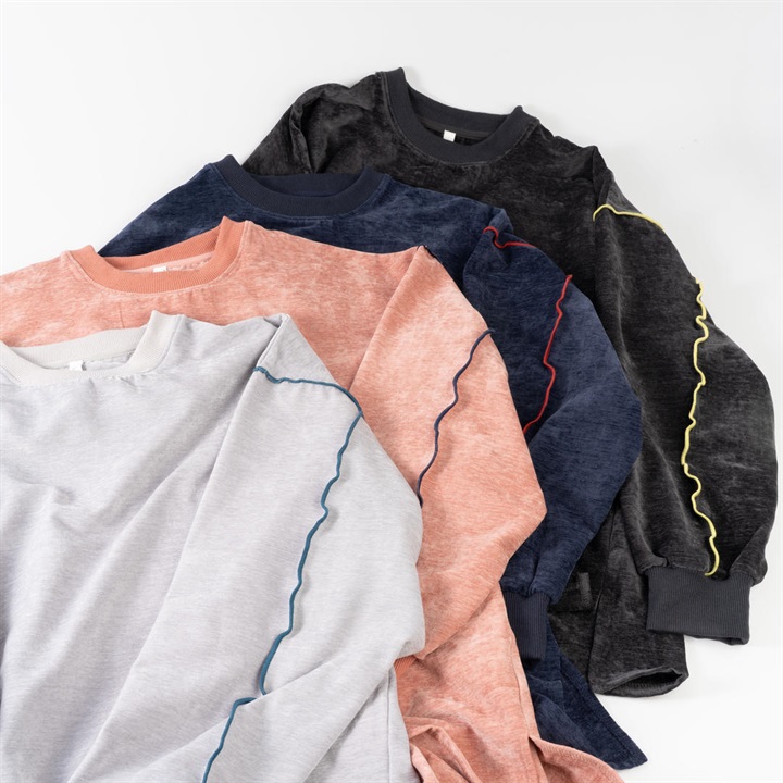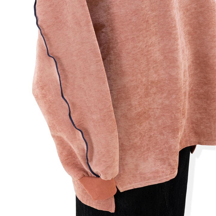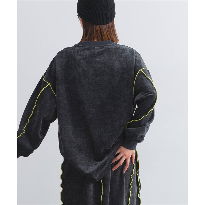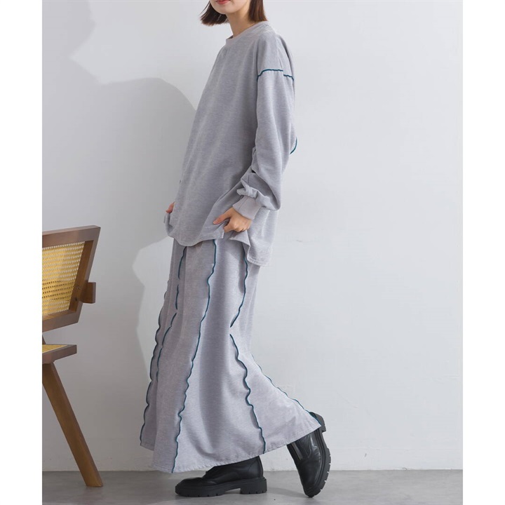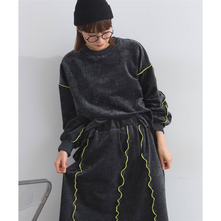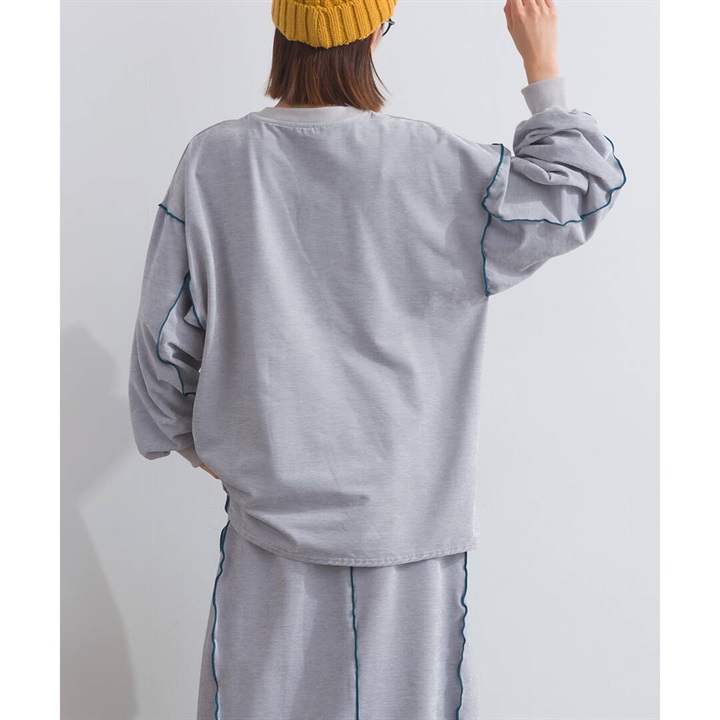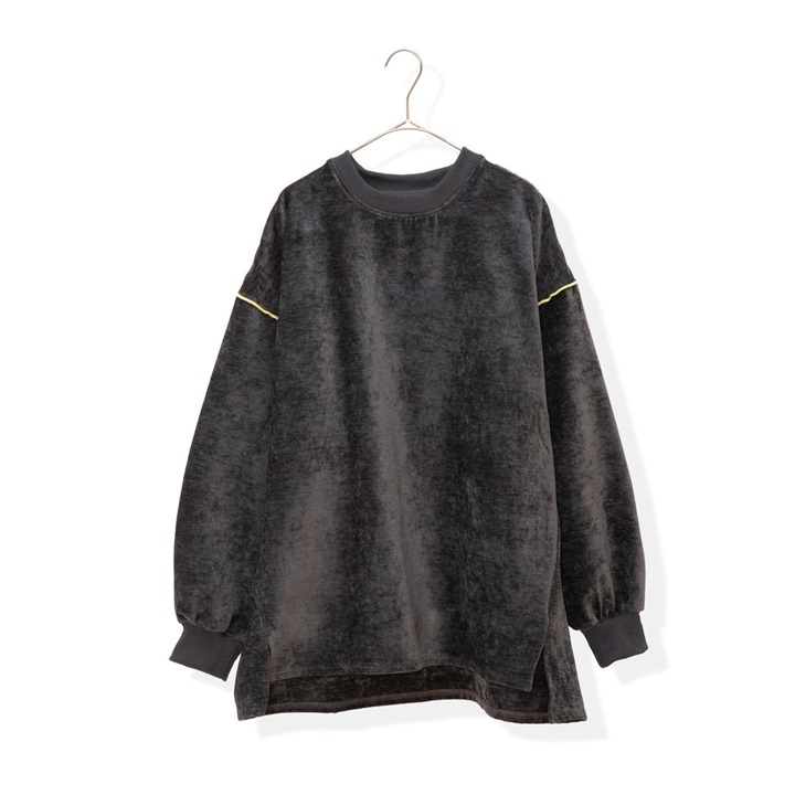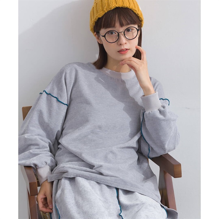 シンプルなスウェットに配色メロウが効いたアイテム。お尻まですっぽり隠れるゆったりとしたサイズ感。ボトムスを選ばず、どんなアイテムとも相性抜群です。"【Lupilien】スラブベロア メロウスカート"とセットアップで着用いただくのもおすすめです♪