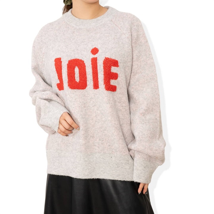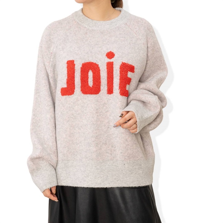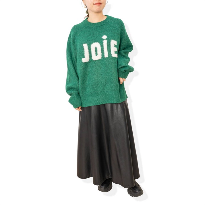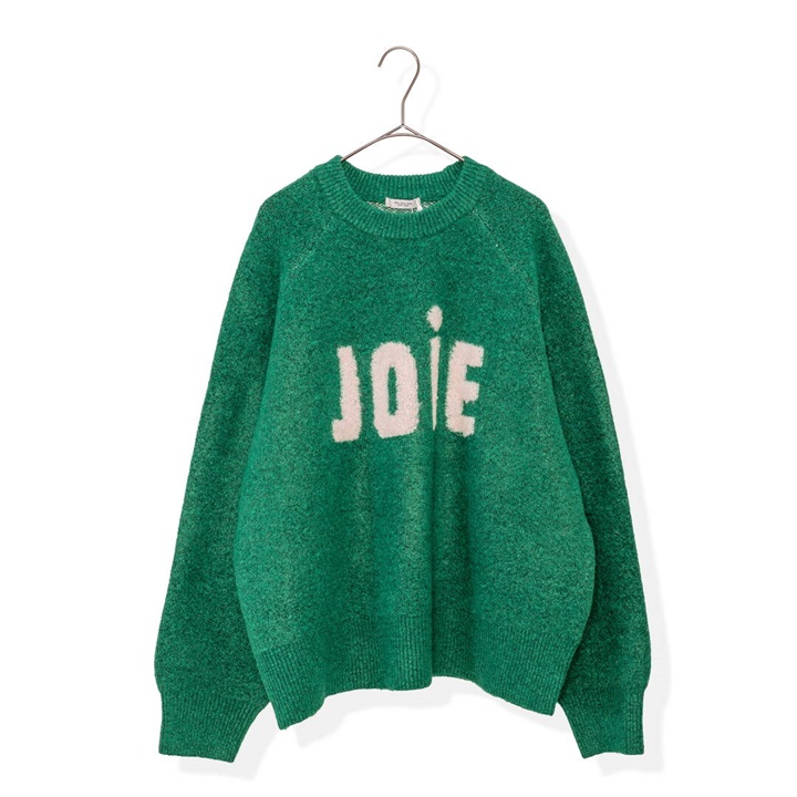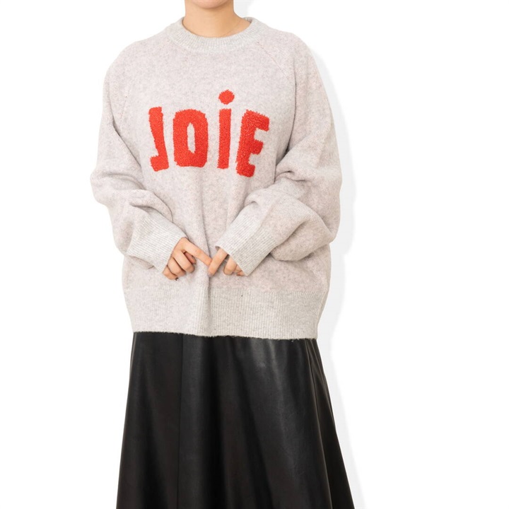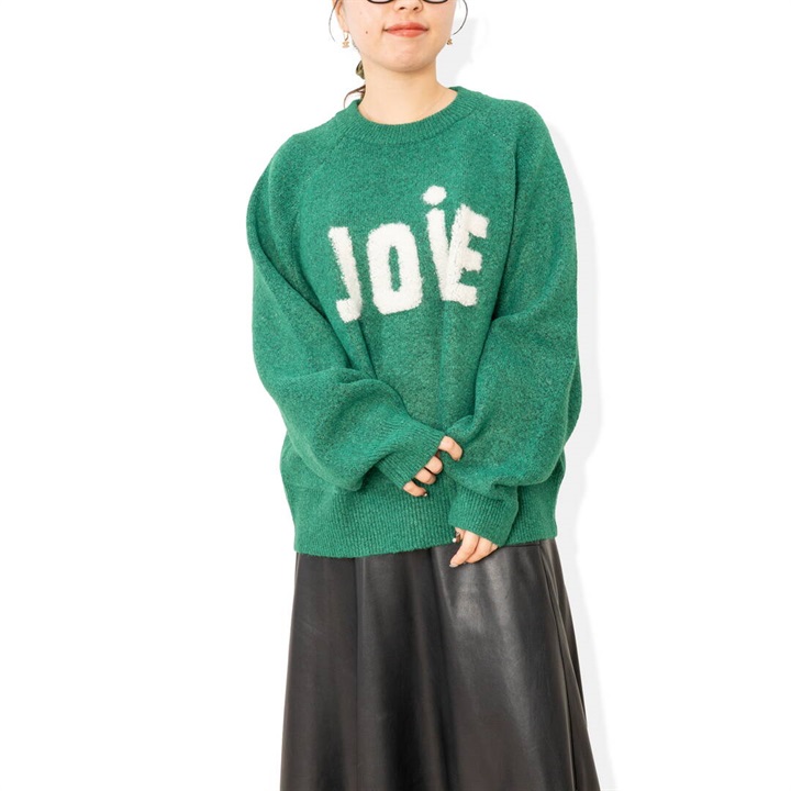 立体的なループジャガードで表現した「JOiE」ロゴが目を惹く、キャッチーな一枚。着心地も柔らかく、あたたかく、毎日着たくなるニットです。ゆるっとルーズなシルエットでカジュアルムードたっぷり。程よい丈感はスカート、パンツともに相性良く着こなせます。着用モデル153cmです。