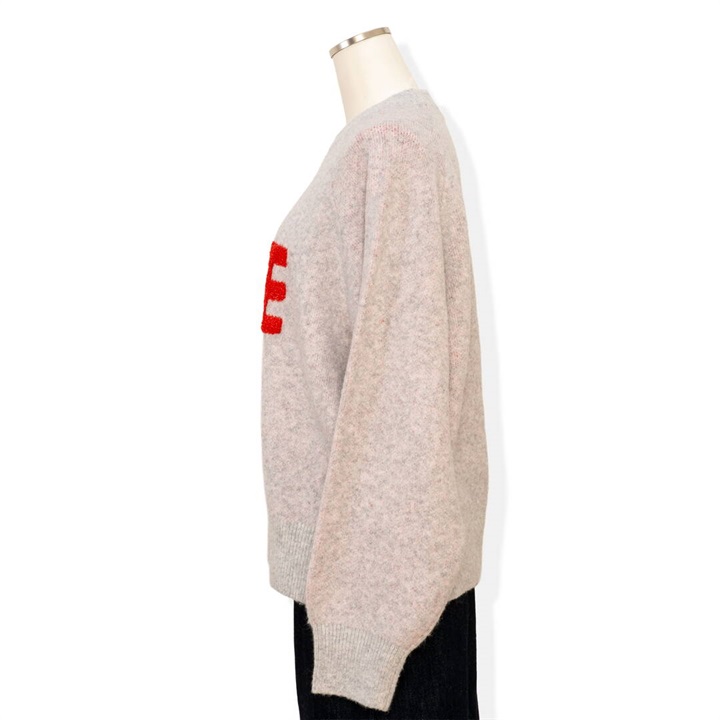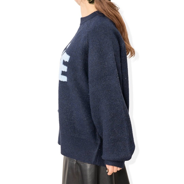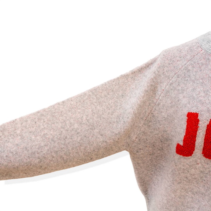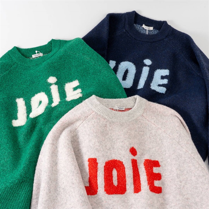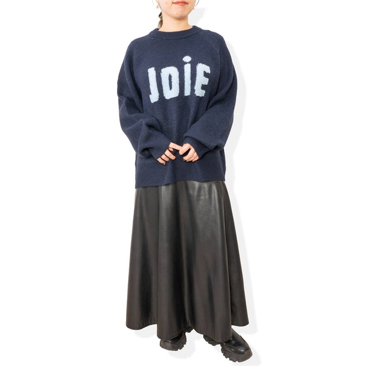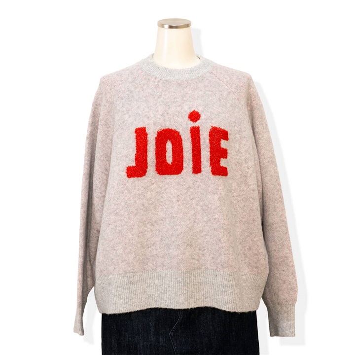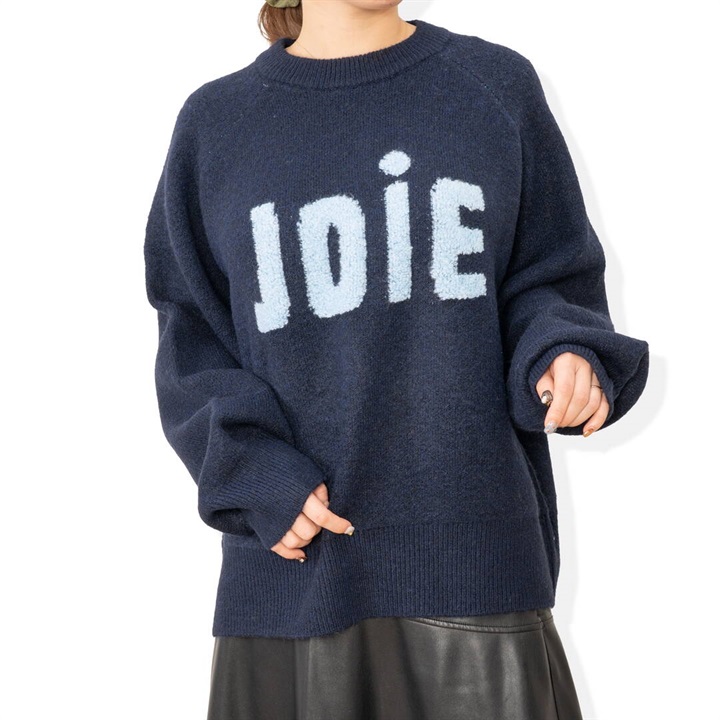 立体的なループジャガードで表現した「JOiE」ロゴが目を惹く、キャッチーな一枚。着心地も柔らかく、あたたかく、毎日着たくなるニットです。ゆるっとルーズなシルエットでカジュアルムードたっぷり。程よい丈感はスカート、パンツともに相性良く着こなせます。着用モデル153cmです。