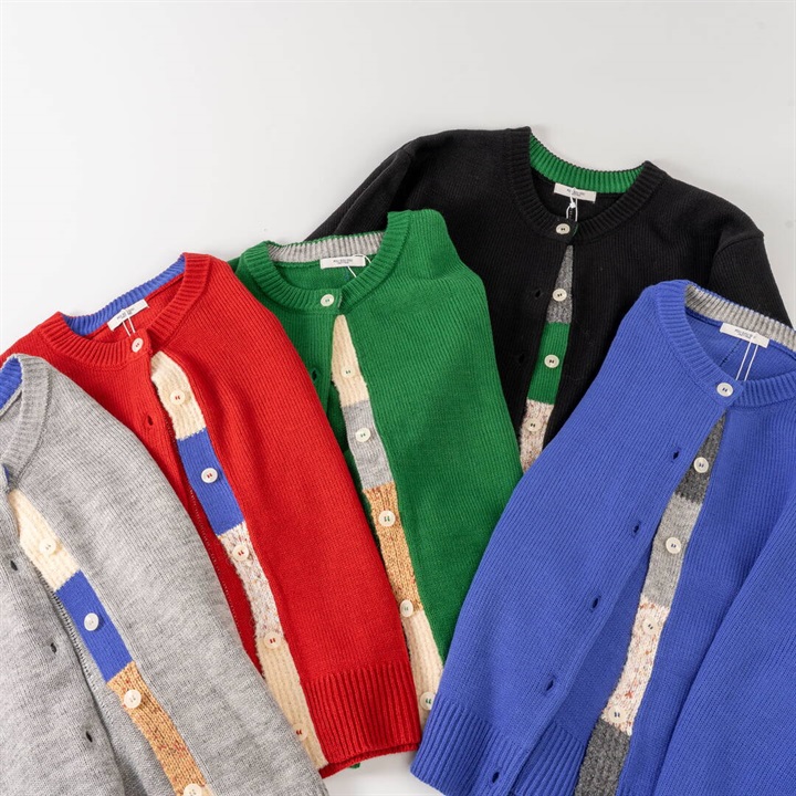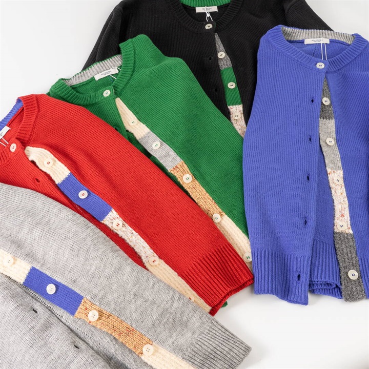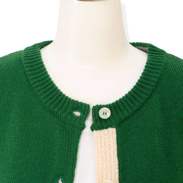 【POU DOU DOU】下前立て配色クルーネック前開き長袖ニットカーディガン