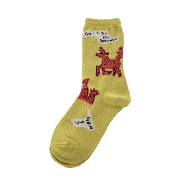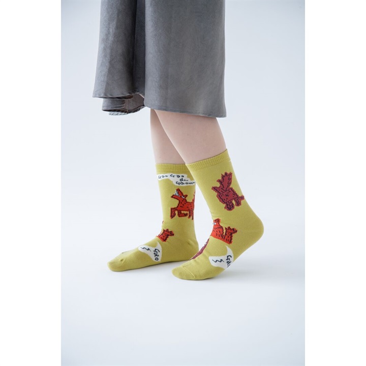 ちょっと元気のない日には、”くせ強”のくすっと笑えるソックスで、テンションを上げていきましょう! かわいい生き物の刺繍がちょこっと飛び出たものや、左右でデザインの違うもの、はたまたラメ糸を使ったキラキラの一足など、個性的なソックスを作りました。 2足1セットで帯巻きでお届けします。 足元がポイントの着こなしにおススメです。