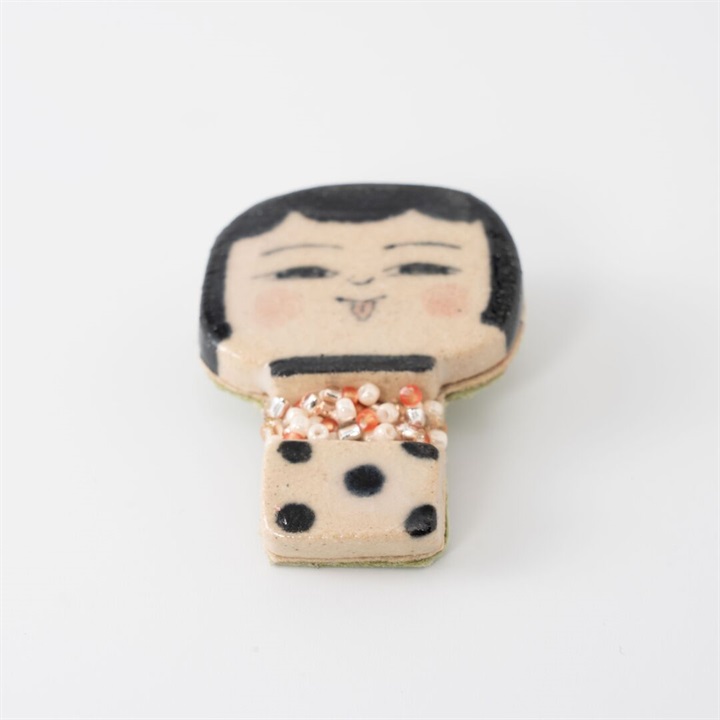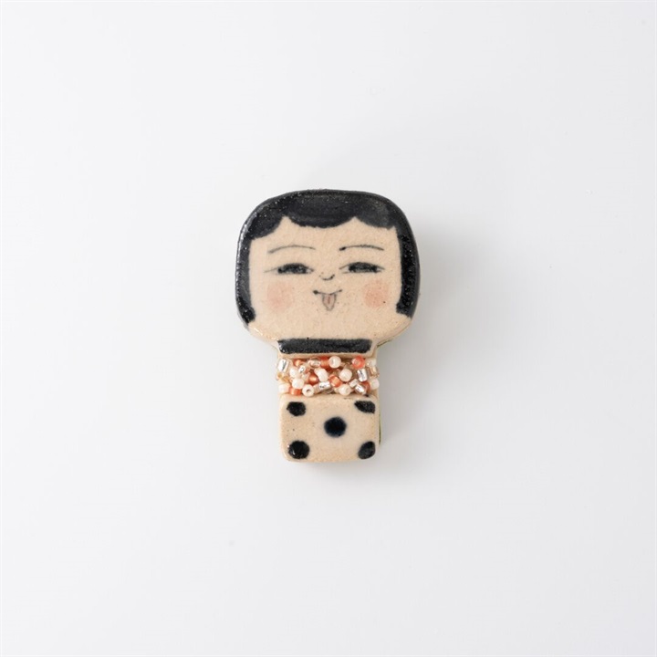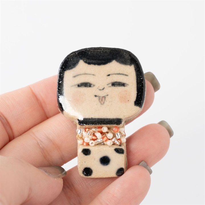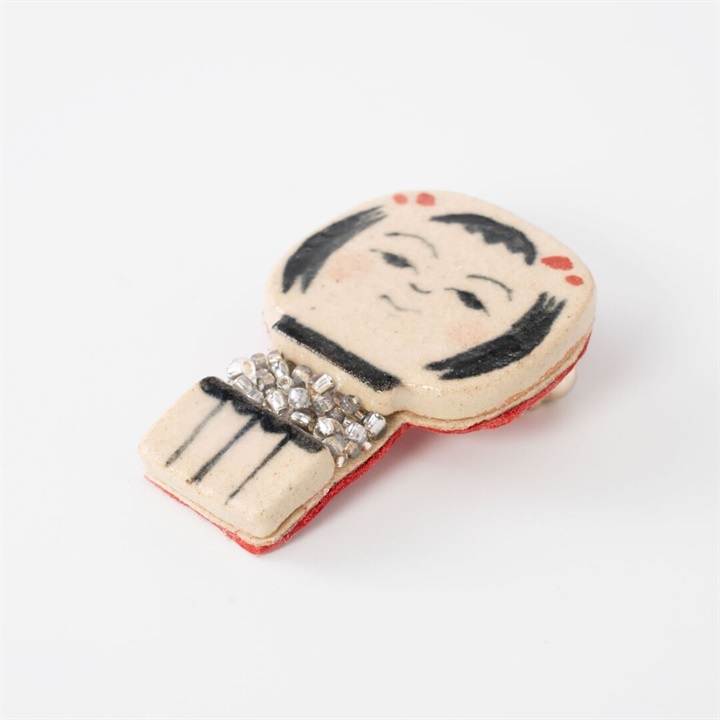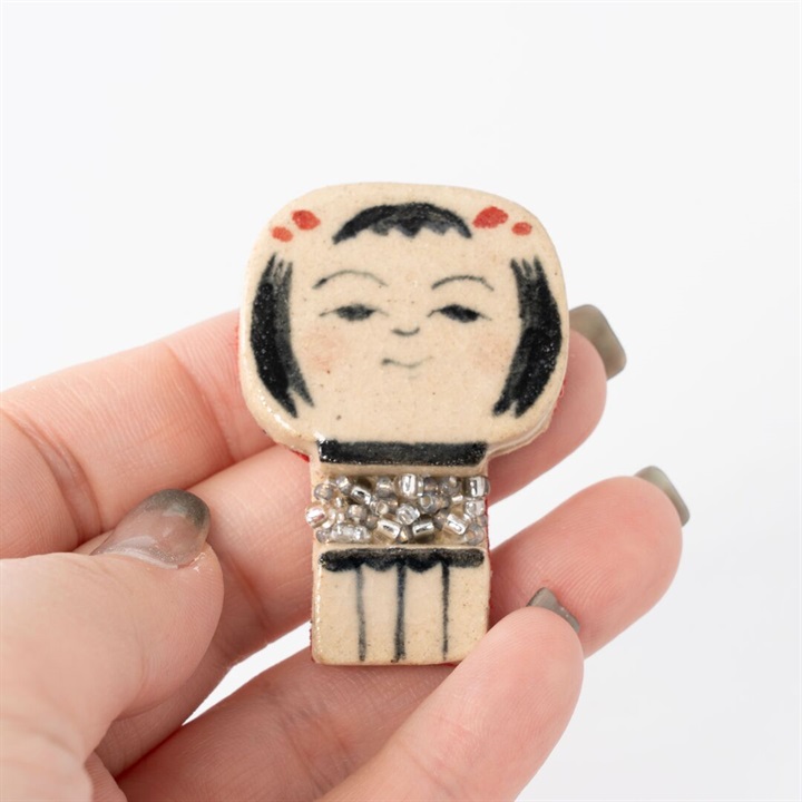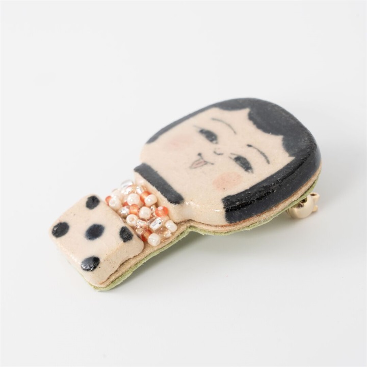 【mochi】陶器とビーズ刺繍のブローチ こけし