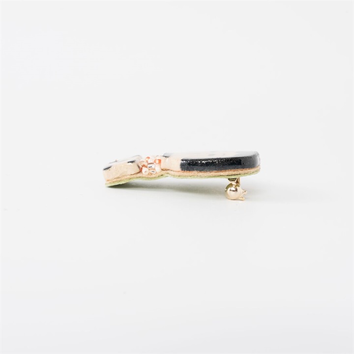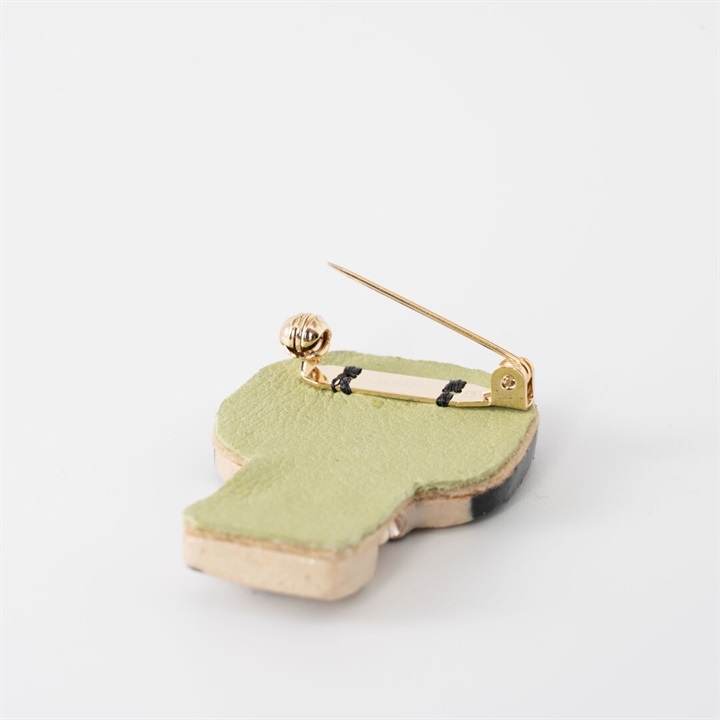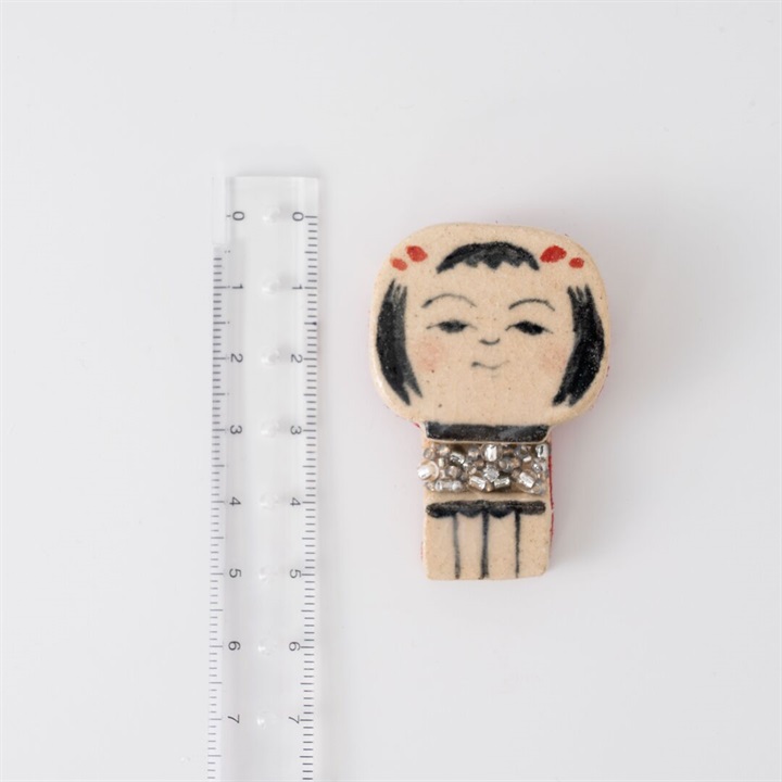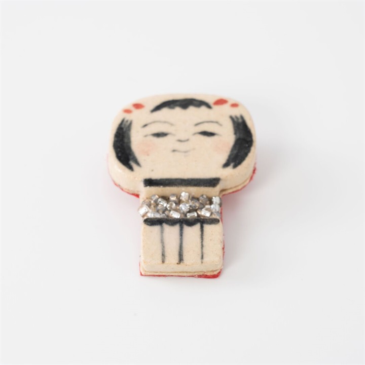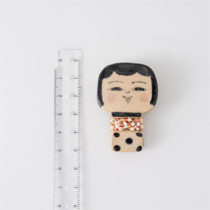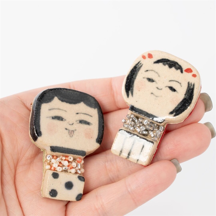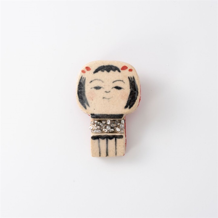 【mochi】陶器とビーズ刺繍のブローチ こけし