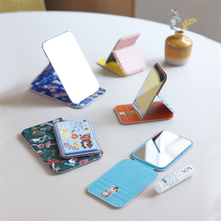 3段階に角度を調整できる折りたたみミラーに、ナタリー・レテさんの楽しいイラストたちをデザインしました。彼女の描くイラストは個性的で表情がとても豊か。マットな質感と色合いもポイントです。ミラーは大きめサイズで見やすく、薄くてかさばらないので、ご自宅でも外出先でも使いやすく活躍しそう。レトロなタッチのイラストが懐かしみを感じます。 ▼プレゼント用のラッピングバッグはこちら