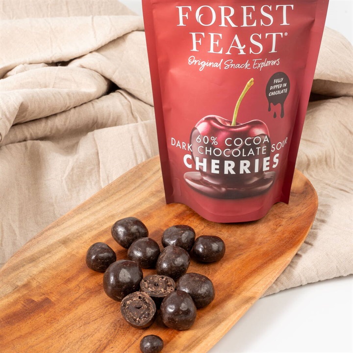 甘酸っぱいサワーチェリーをカカオ60%のダークチョコで包み込んだ、グルテンフリー&ヴィーガン対応の贅沢な一粒。