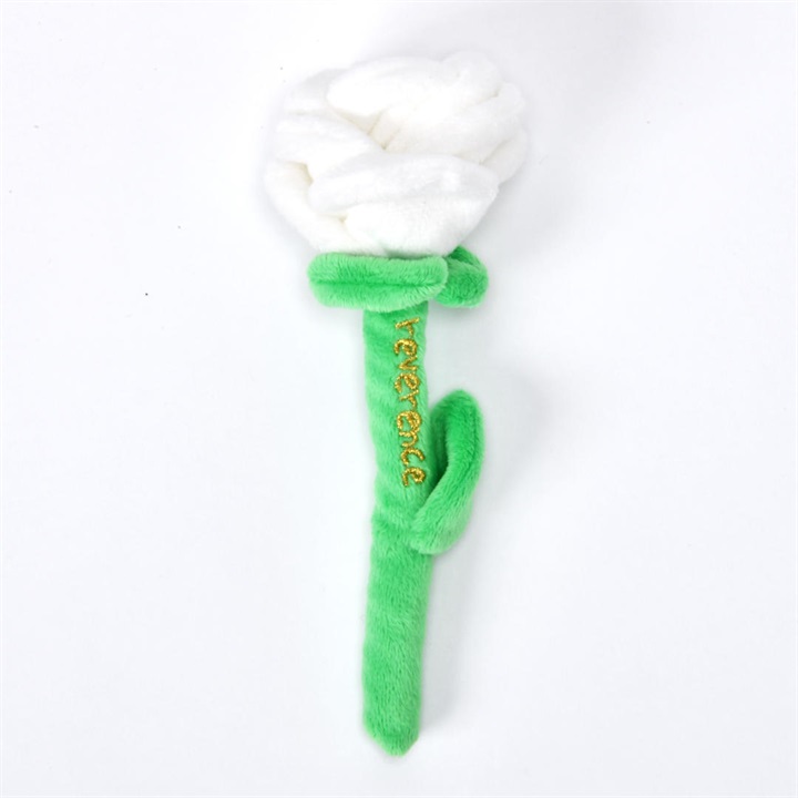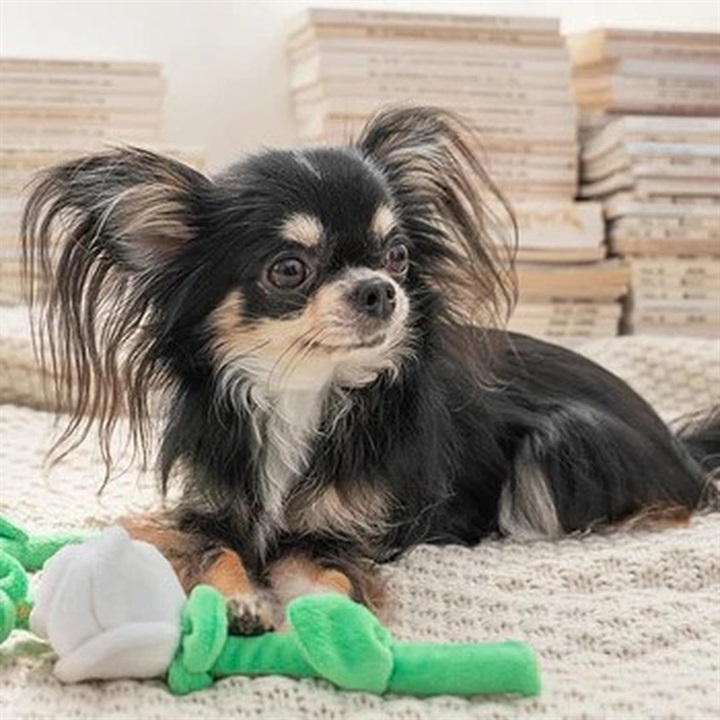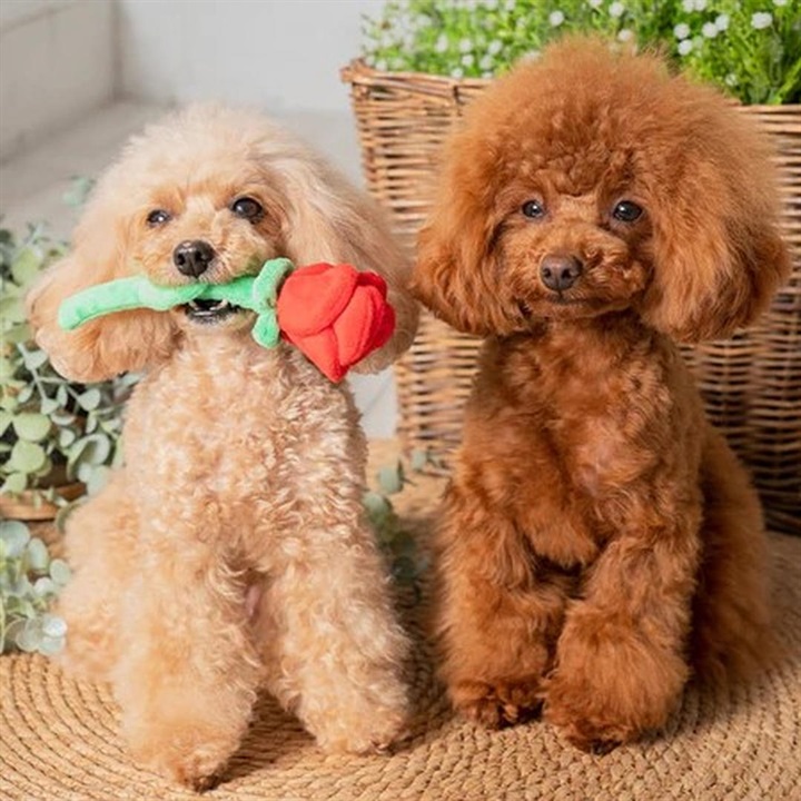 薔薇の形をした小型犬用おもちゃ。花びら部分を触るたびにカシャカシャと音が鳴る仕様で、わんちゃんの好奇心をくすぐる仕掛けになっています。また、花びらは一枚一枚めくれるようになっていて、おやつを隠して遊んだり、ノーズワーク(嗅覚トレーニング)にもおすすめ。ロープ風の茎は咥えやすく、カミカミしたり、ブンブン振り回したり、引っ張り合って楽しく遊べます。わんちゃんを飼っている方や、わんちゃん友達へのプレゼントにもぴったりです。 ▼プレゼント用のラッピングバッグはこちら
