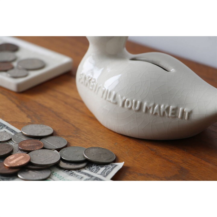 かつて狩猟の道具だったこの造形が、貫入仕上げの陶器で作られた貯金箱になりました。