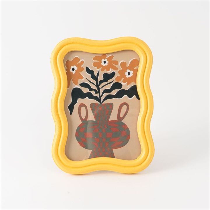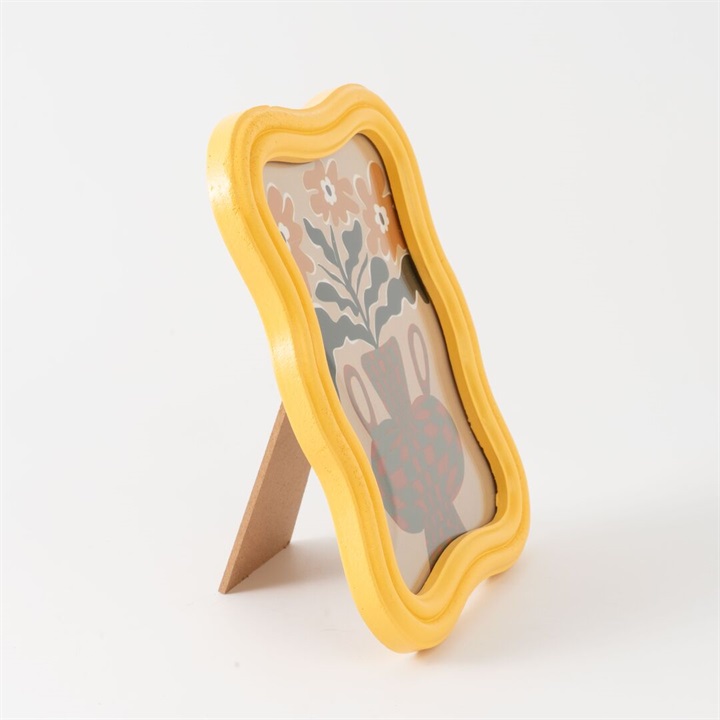 個性的な形と明るいカラーがおしゃれなフォトフレーム。個性的なウェーブのフレームが、存在感抜群。インテリアのアクセントになるおすすめの1点です。おしゃれな台紙がセットされているので、中身を替えずにアートポスターとして飾っても◎。中身にお友達との写真を入れてギフトするのも、素敵です。 ▼プレゼント用のラッピングバッグはこちら