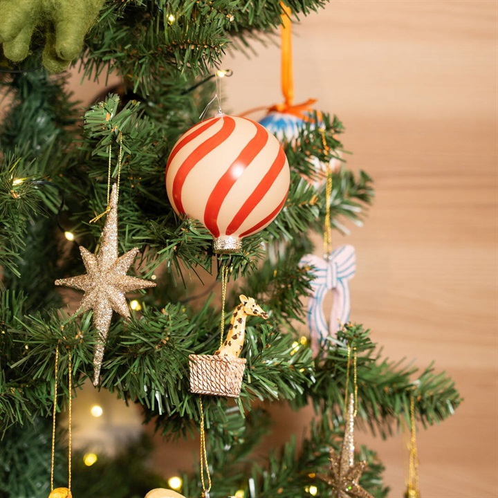 気球に乗った動物たちのオーナメント。かわいい気球とクリスマスカラーが合わさってクリスマス気分を盛り上げてくれます。