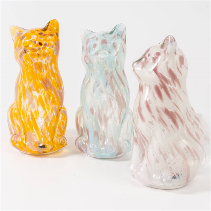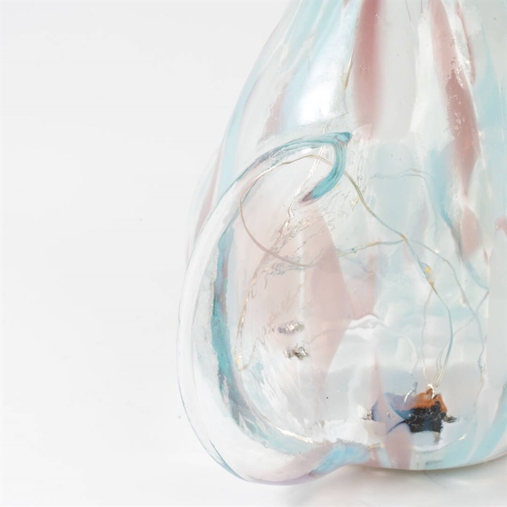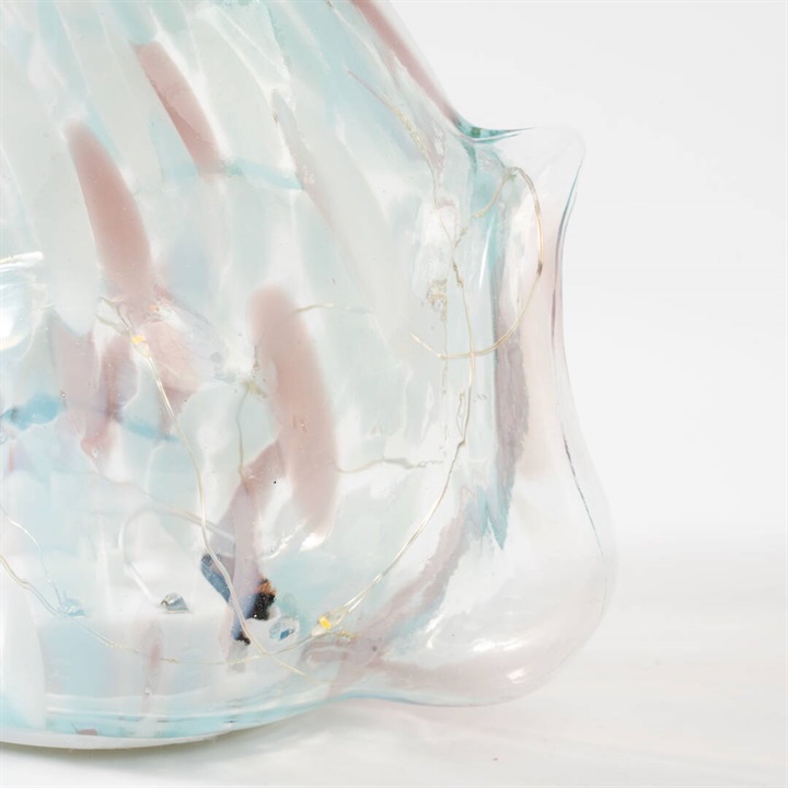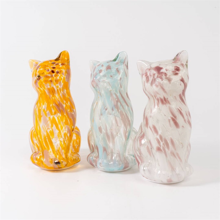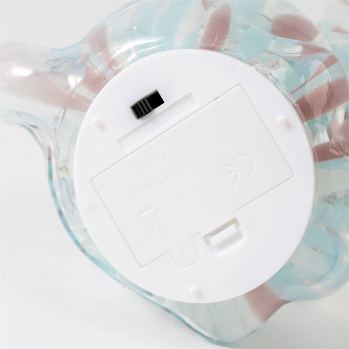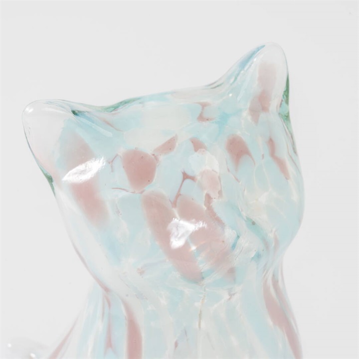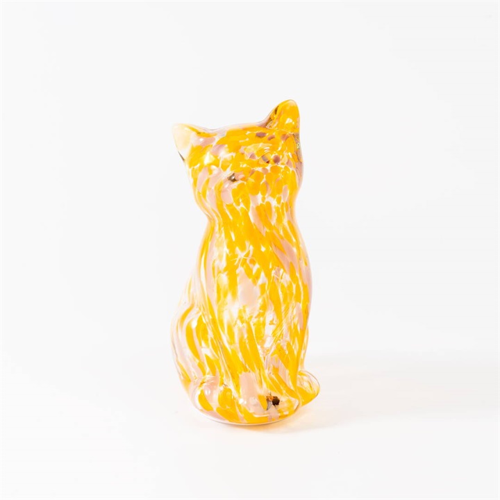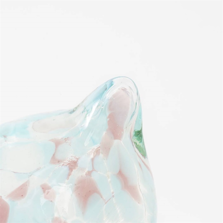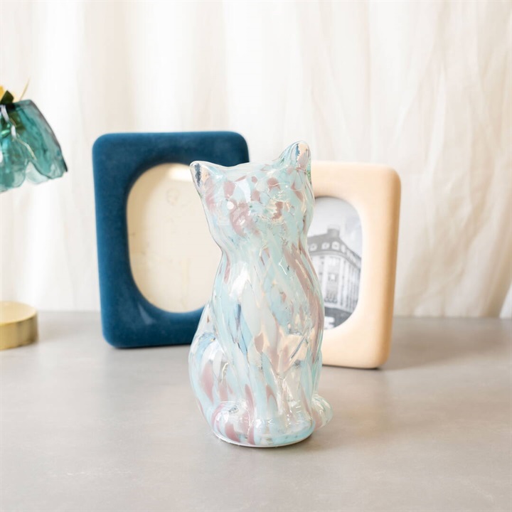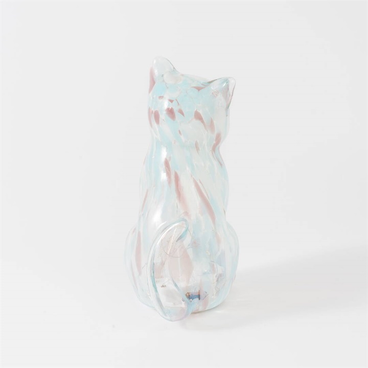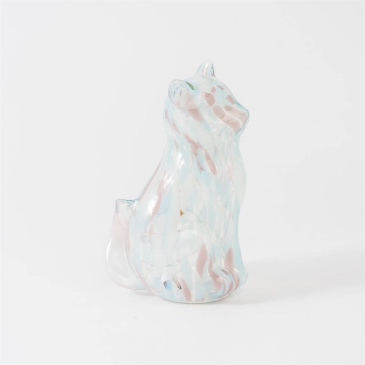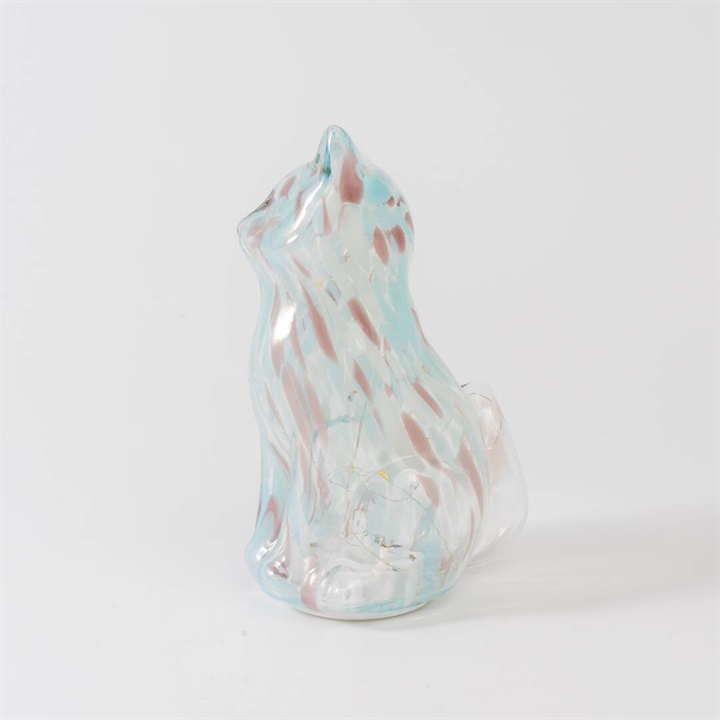 マーブル模様のガラスが美しい、ネコ型のテーブルライト。やわらかな光がほんのりと灯り、ガラスから優しく漏れる光に癒されます。まるでネコがそっと寄り添ってくれているような温もりを感じられます。インテリアとしても映えるデザインで、リビングやベットサイドにぴったりです。電池式なので、コンセントの場所を気にせずどこでも自由に飾れます。点灯させていない状態でも、オブジェとしてお使いいただけ、窓際に置いて日光を反射すると綺麗です。
