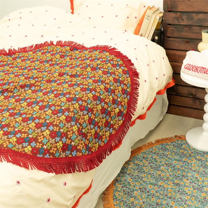高級感のあるジャガードにキャセリーニらしい配色のフリンジを組み合わせ、とにかく「かわいい」が詰め込まれたアイテムです。さっと敷くだけでお部屋を一気に垢抜けさせてくれること間違いなし。高級感のあるジャガードですが、実はやや薄めの軽くて柔らかい素材を使用しており、ラグとしてだけでなく、テーブルクロスやハウスカバーとしてもお使いいただけるアイテムです。 ▼プレゼント用のラッピングバッグはこちら