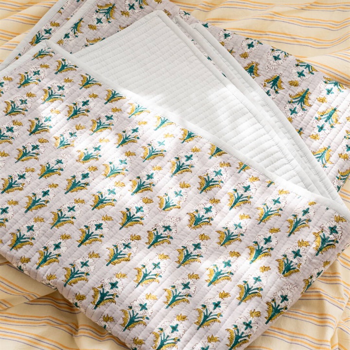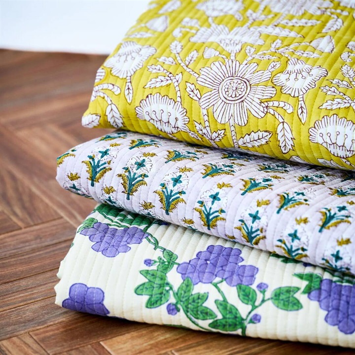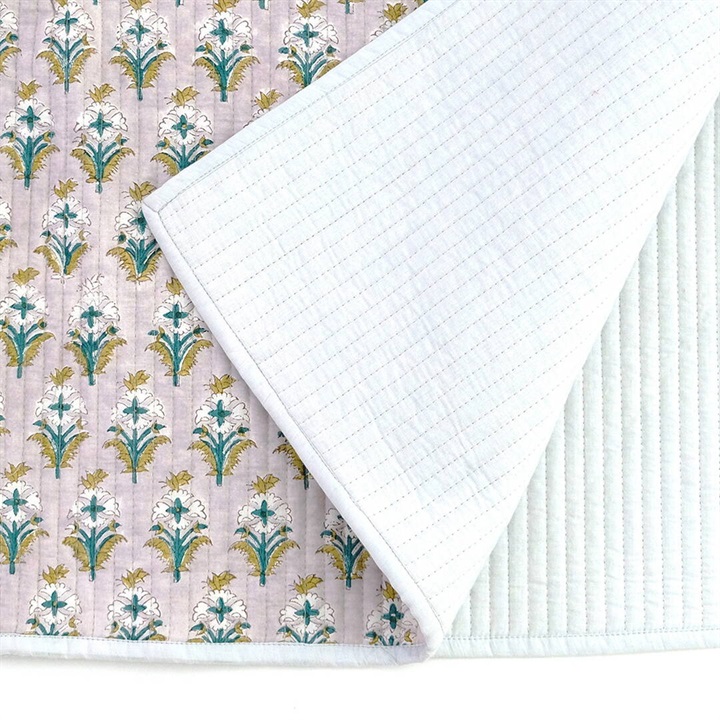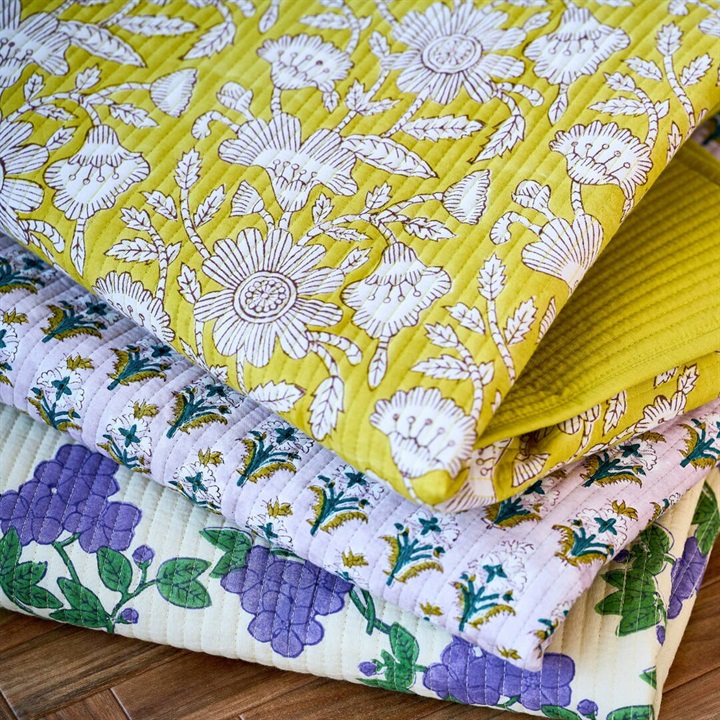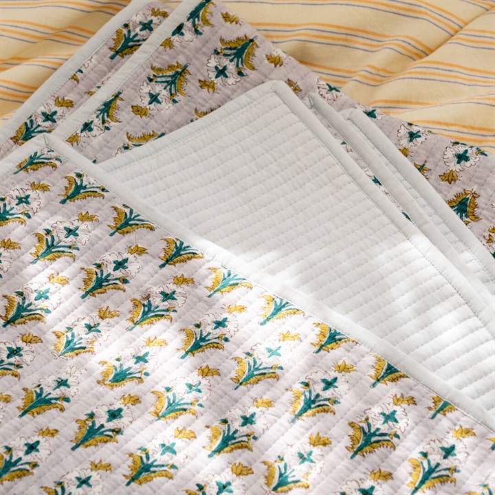 職人の手でひとつひとつ丁寧に施されたブロックプリントを使用したキルトマット。