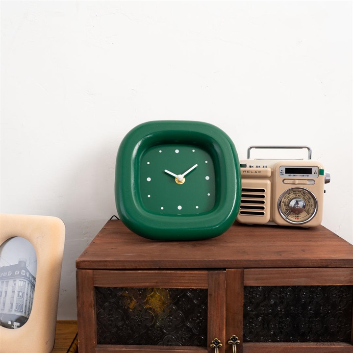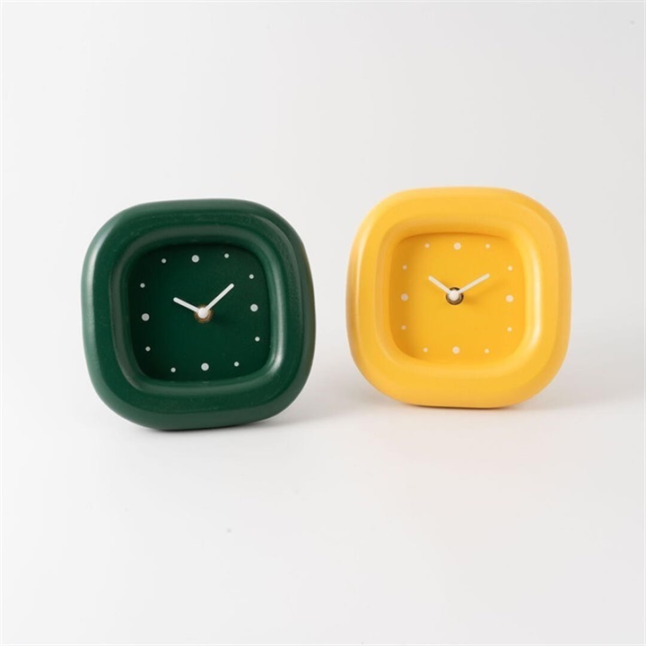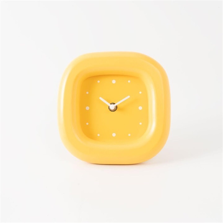 ぽってりとした丸さが可愛い置時計。電池式なので、お好きな場所に置くことが出来ます。カラーは、イエローとグリーンの2色展開。インテリアの差し色にぴったりです。 ▼プレゼント用のラッピングバッグはこちら