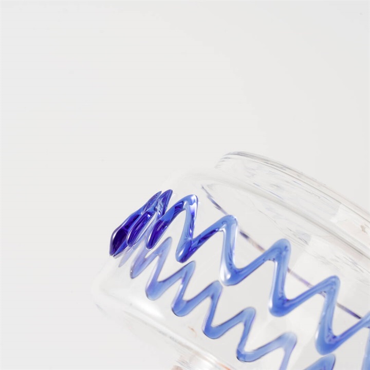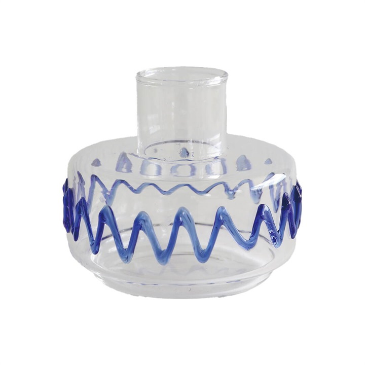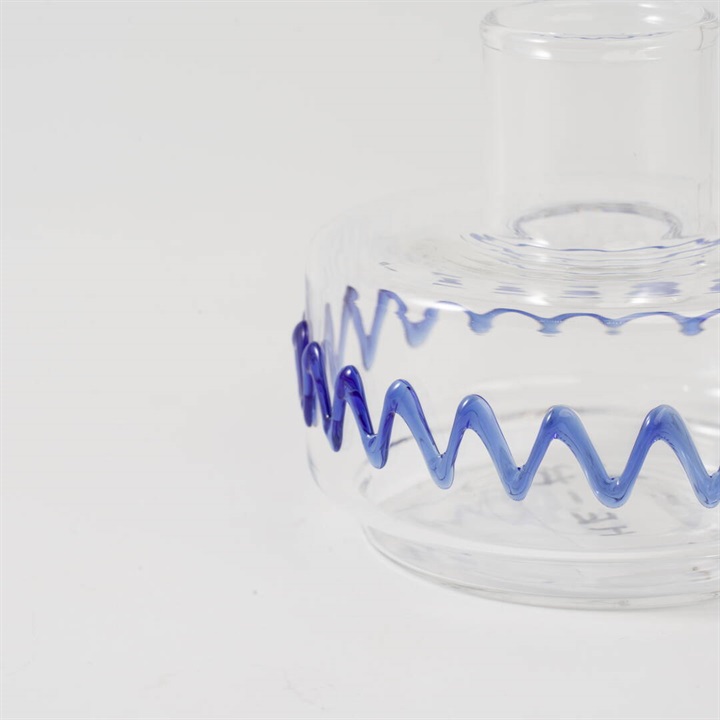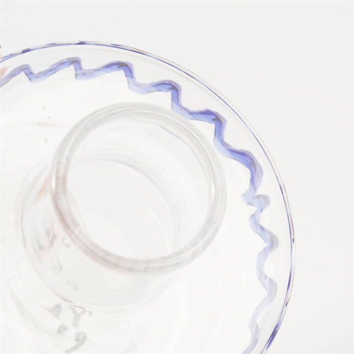 どこかリズミカルな波のパターンが、遊び心のあるフラワーベース。ガラス製で涼し気な佇まいに癒されます。窓際に飾れば、パッと目を惹くシンプルな中にも個性が光るアイテムです。模様部分は凹凸感があり、可愛い!