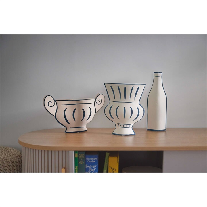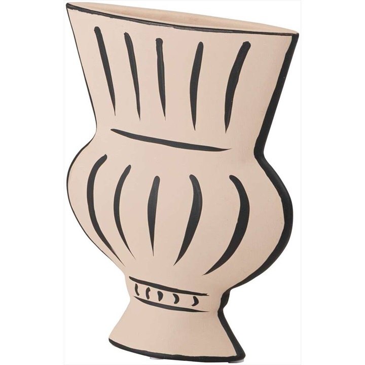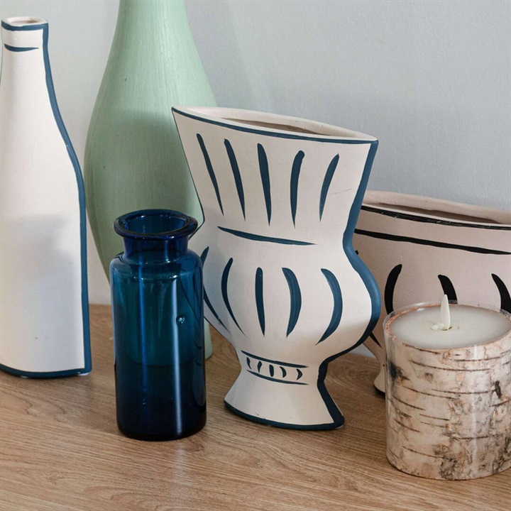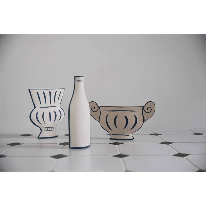 アートのように空間を彩る平面的デザインが特徴のフラワーベース。グラフィカルなラインと柔らかなフォルムが美しく調和した、上質な印象です。2Dアートのような平面的なデザインが、様々なインテリアに新鮮さを演出します。陶器のマットな質感がほどよい温もりを感じさせ、空間に上品な立体感をプラス。職人による手描きのラインには一つ一つに個性があり、世界にひとつだけの風合いを楽しめます。花器としてだけでなく、オブジェとしても洗練された存在感を放ちます。