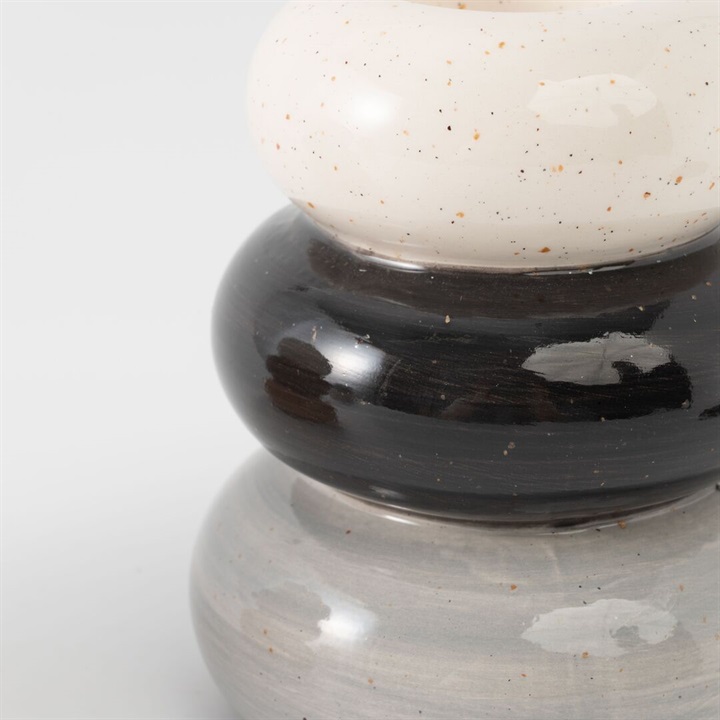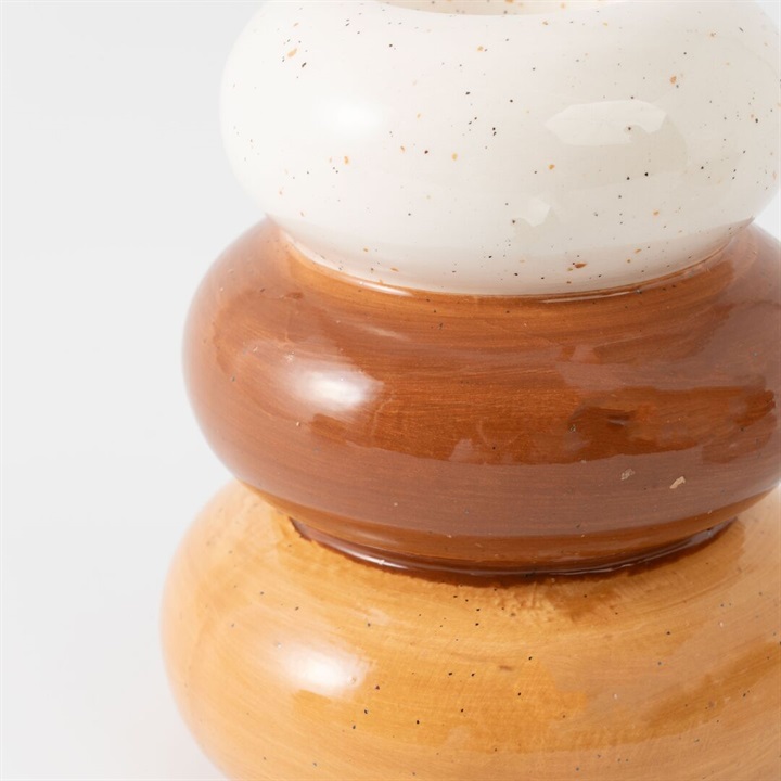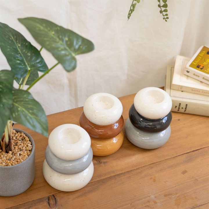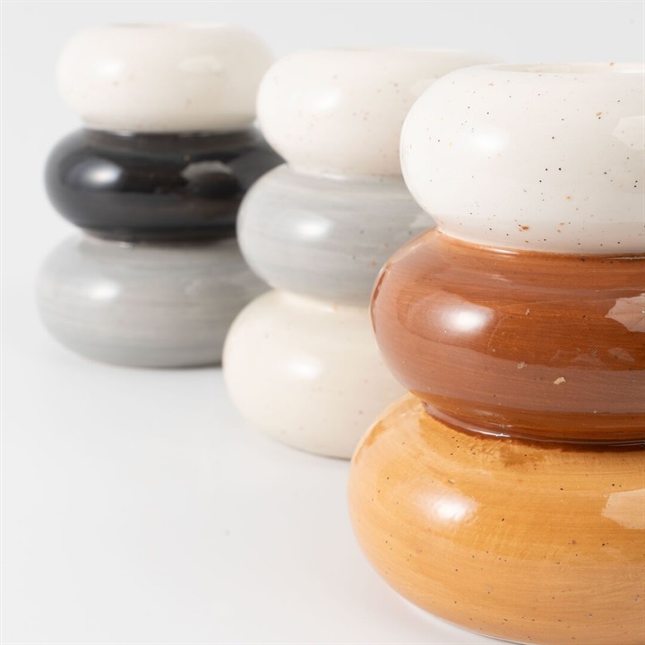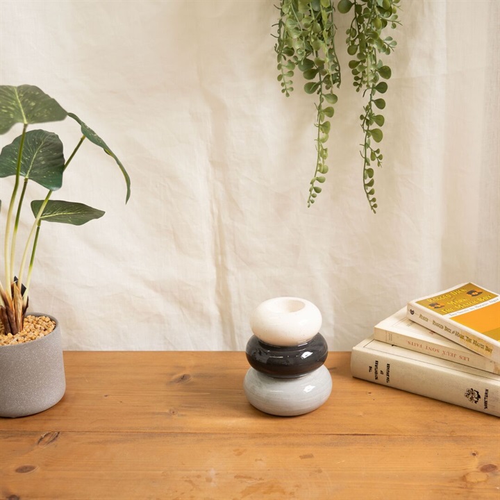 モダンな印象のキャンドルホルダー。ストーンを重ねたようなデザインで、アートな雰囲気のアイテムです。セラミックのような塗装がお洒落な質感を演出しています。カラーは3色展開。グレー、ブラックはホテルライクやシックなお部屋に。ブラウンは温かみのあるカラーなので、ナチュラルやレトロなお部屋にも合いやすいです。 ▼プレゼント用のラッピングバッグはこちら