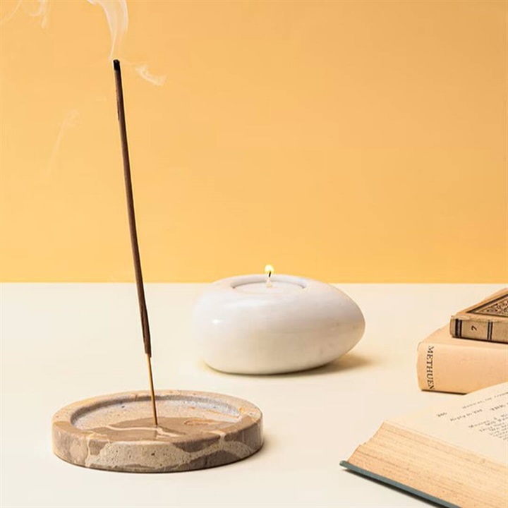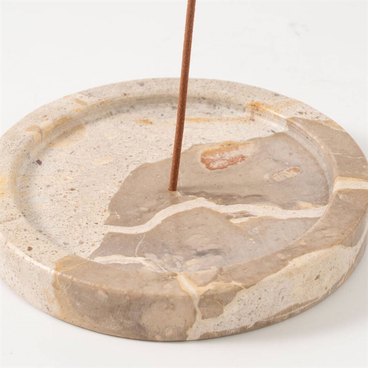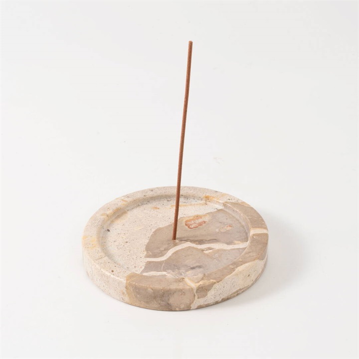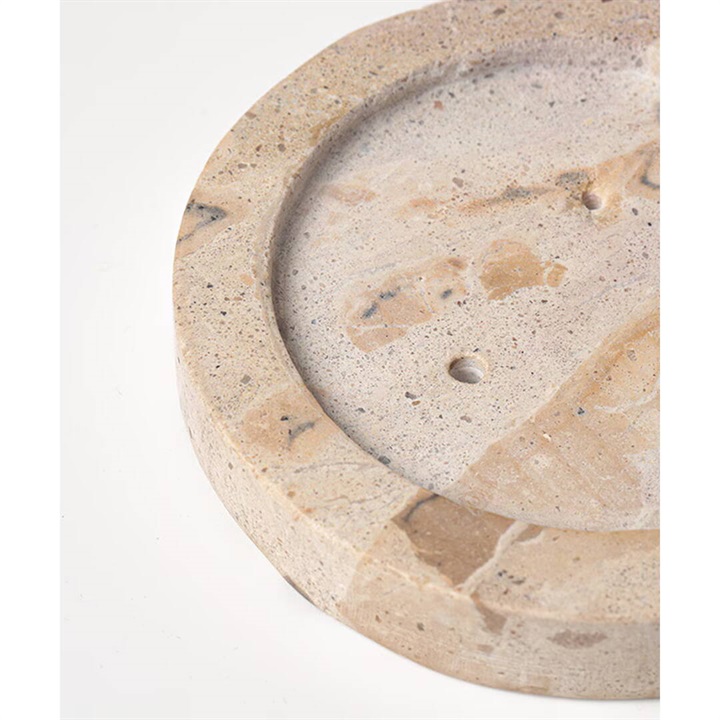 異なる表情をもつ3種類の天然石を贅沢に使ったお香が立てられるプレートです。スティックタイプ、コーンタイプのお香に使えます。お香を挿す箇所は3種類の大きさがあるので、様々な種類に使用いただけます。またパロサントやホワイトセージを置いたり、アクセサリーなどを置くのもおすすめです。わずかない色の差や質感のゆらぎが、空間に奥行とニュアンスを与えます。