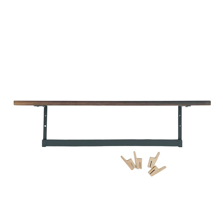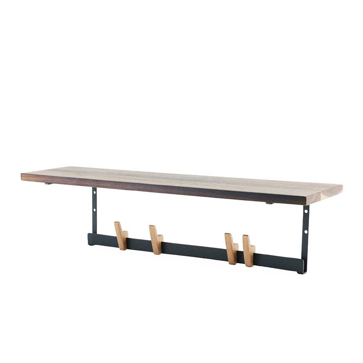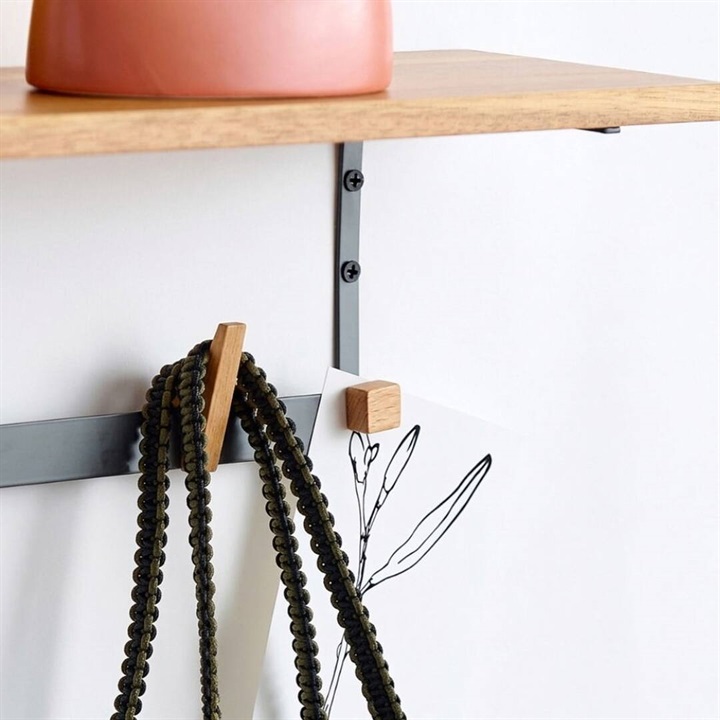 バーには木で作られたフックを掛けることができ、フックはスライド可能なので、お気に入りのアイテムや日用品を自由な位置で掛けることができます。