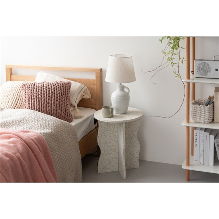 テラゾー柄と呼ばれる石の様な模様を施したトレンド感のあるシリーズ。凹凸のある表面が、インテリアに質感を持たしてくれるので、オシャレなお部屋作りに活躍してくれます。オブジェの様な存在感で、個性ある空間を演出できます。足の側面が波上になっているウェーブは、素材によるトレンド感を更に際立たせてくれます。ソファ横やベッドサイドに置いて、お部屋のアクセントとして活躍してくれます。※2025年2月メーカー様のご意向により販売価格を変更しております。