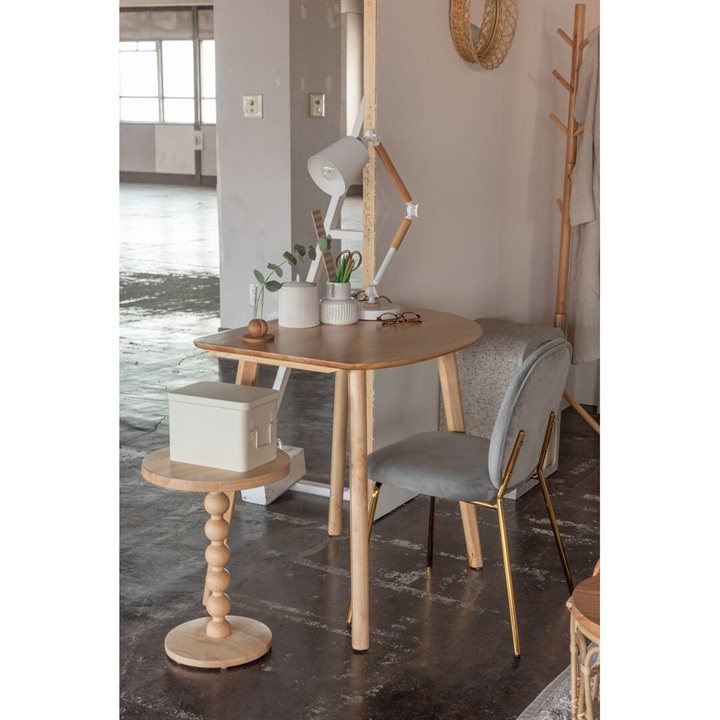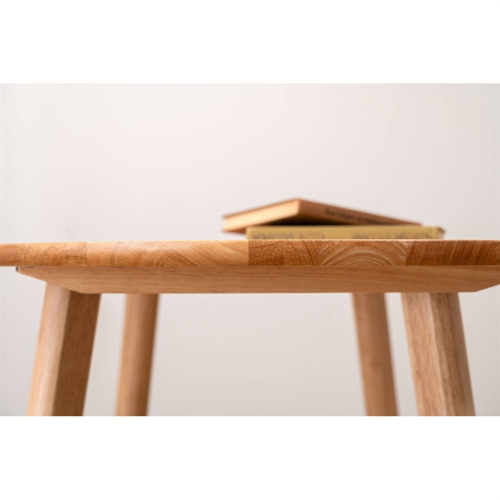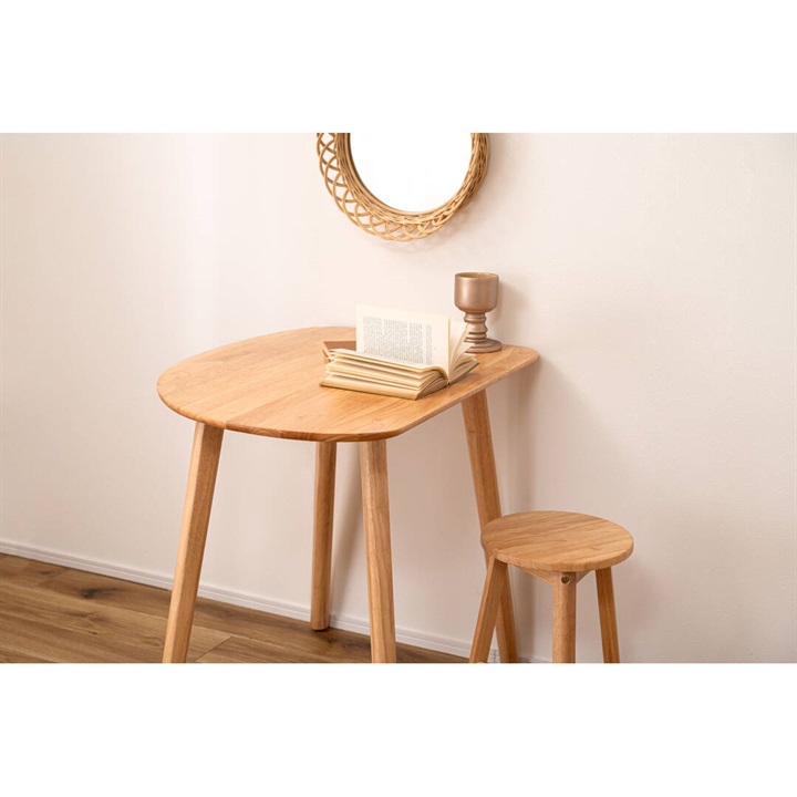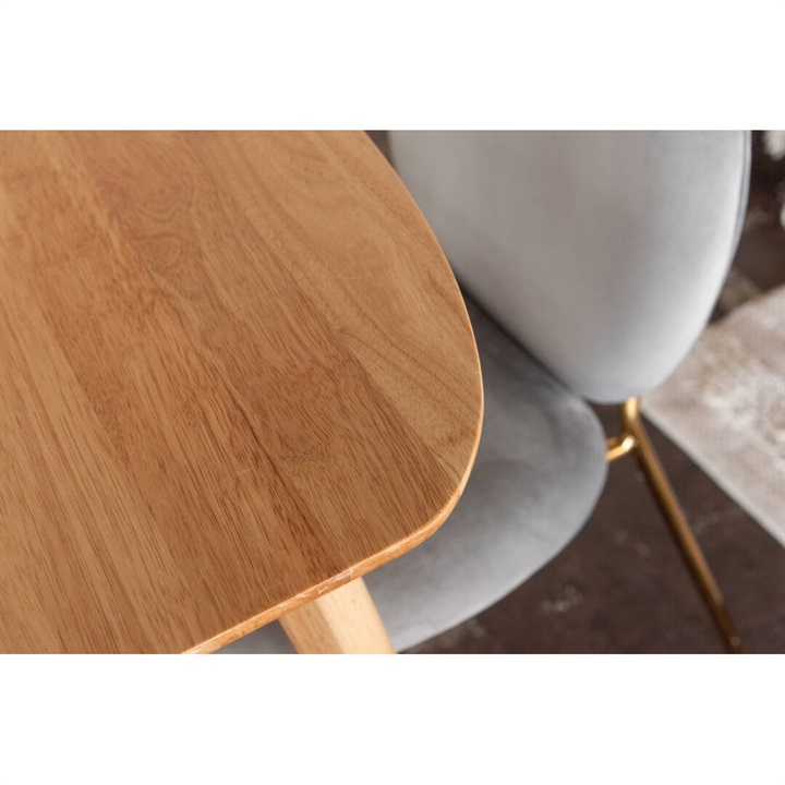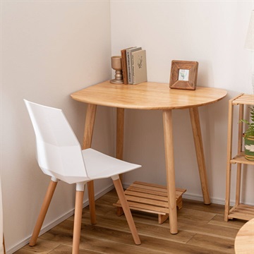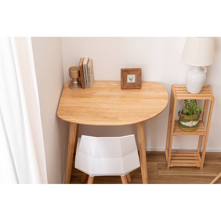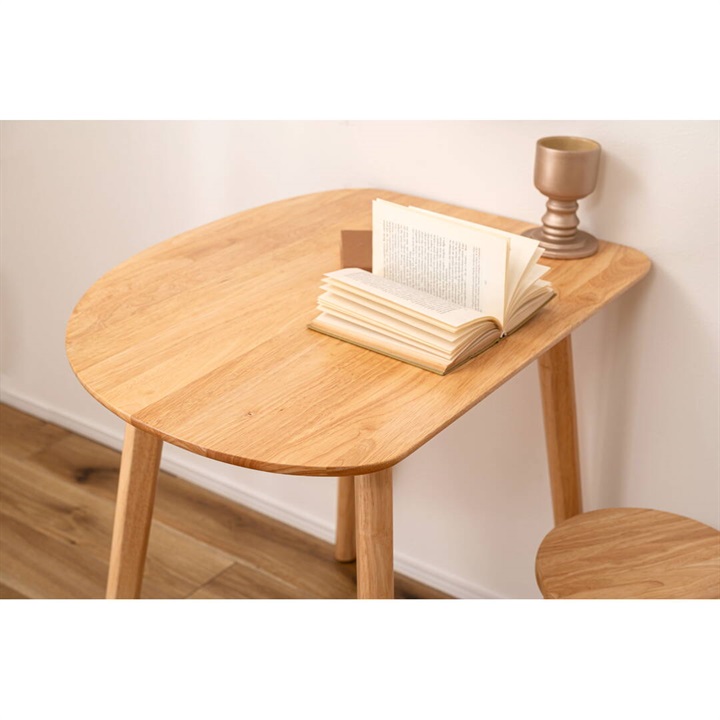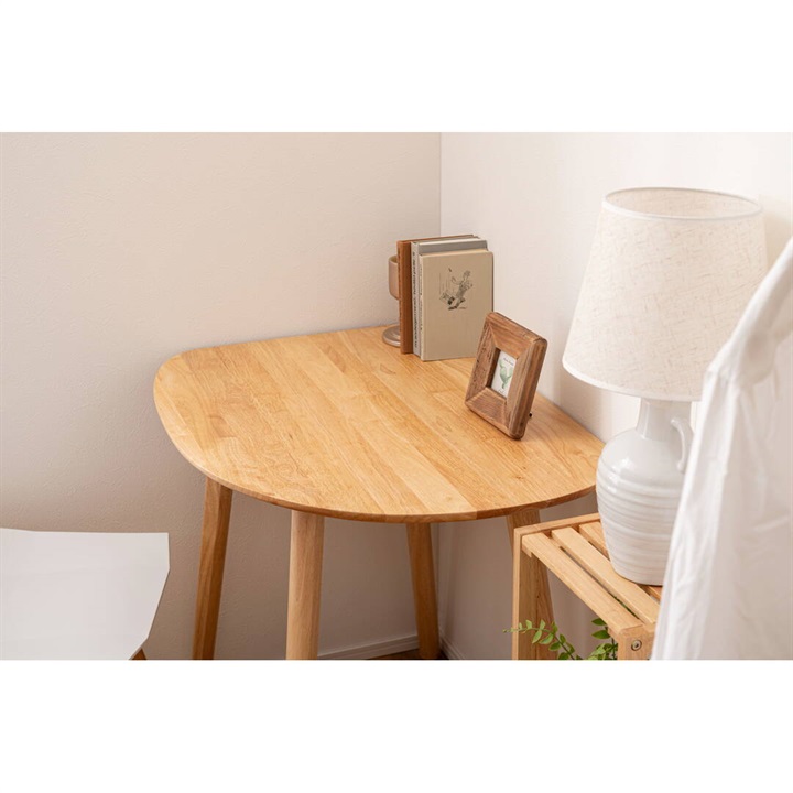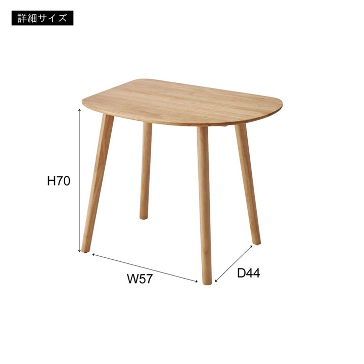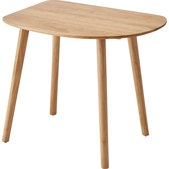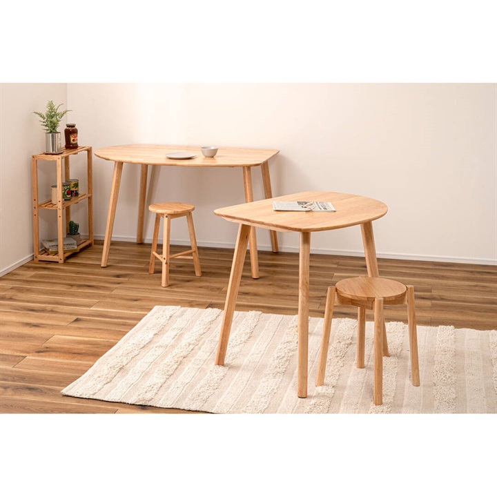 天然木のぬくもりを感じる北欧風デザインの、個性的なフォルムなダイニングテーブル。木目を活かしたデザインと、エッジを極力落とした丸みのあるフォルムが優しい印象を与えます。1人暮らしに丁度良いサイズ感で、その個性的なフォルムを活かし小さなスペースにも置きやすくなっています。
