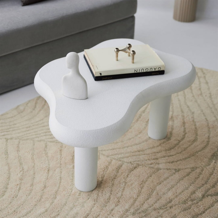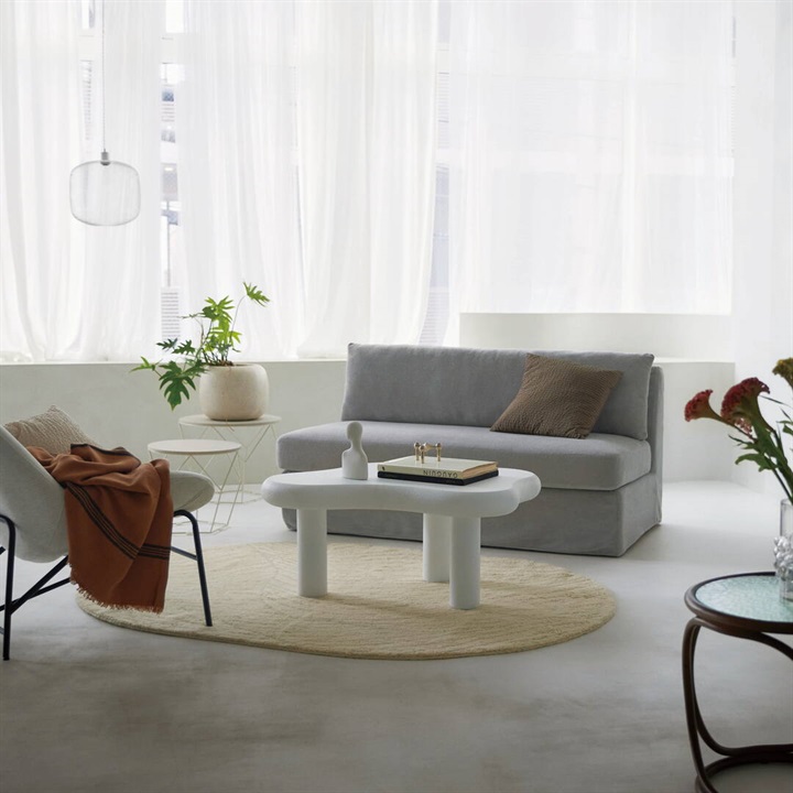 丸みを帯びた天板と、安定感のある3本脚。彫刻のような佇まいが印象的なローテーブルです。角のないなめらかなラインは、空間にやさしい空気をまとわせてくれるデザイン。置くだけでお部屋がぐっと洗練された印象に。オブジェやフラワーベースを置くだけで、まるでギャラリーのような雰囲気を演出してくれます。主張しすぎないのに、確かな存在感。シンプルなインテリアにこそ映えるアイテムです。