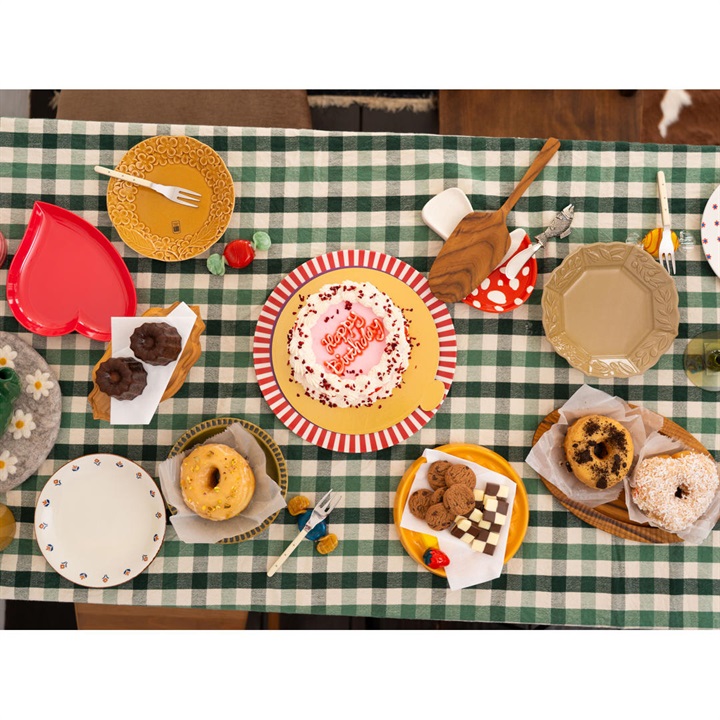 軽くて丈夫、イージーケアで、日常づかいはもちろん、みんなで集まるパーティー、アウトドアにも活躍するバンブーファイバープレート。PVC フリー、BPAフリーでお子様にも安心してお使いいただけます。ヨーロッパのサーカスをイメージしたミツコのディナープレートは、ちょっとすてきな前菜をたくさん盛り付けるのがおすすめ。ハムやチーズ、ラペやオリーブを、お好きなドリンクと楽しんで! ▼プレゼント用のラッピングバッグはこちら