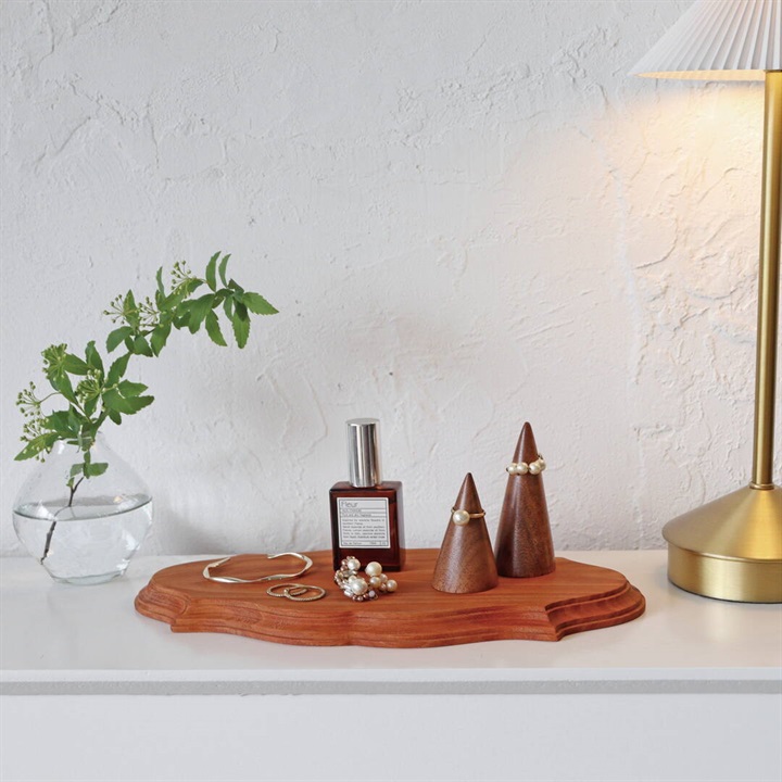 天然木の優しい風合いが魅力のマホガニープレートです。シンプルながら木の素材を活かしたデザインで、マホガニーの滑らかな手触りが特徴です。テーブルにさっと置くだけで、お部屋がまるでカフェのような雰囲気に。また、食器としてだけではなく、小物置きやアクセサリートレイとして使うのもおすすめです。