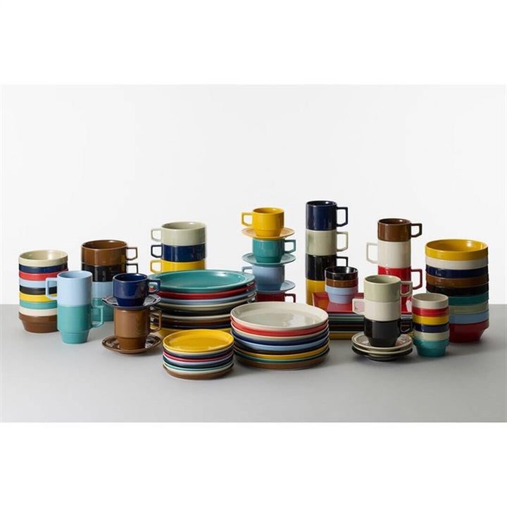 アメリカのダイナーをイメージした洗いやすく丈夫な実用的デザイン。おもちゃのブロックのように組み合わせて楽しめるカラーバリエーションが特徴です。