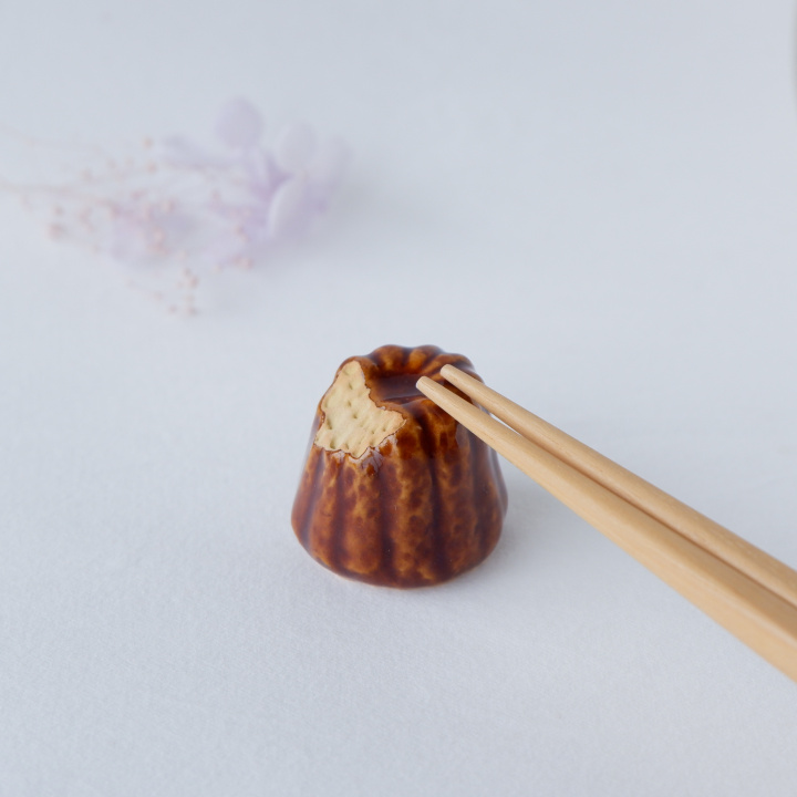 外はカリッと固く、中はモチっと柔らかい食感が特徴のカヌレ。伝統的なフランスのお菓子が箸置きになりました。洋食の献立やティータイムの席にぴったりなとっても美味しそうで可愛い箸置きです。 ▼プレゼント用のラッピングバッグはこちら
