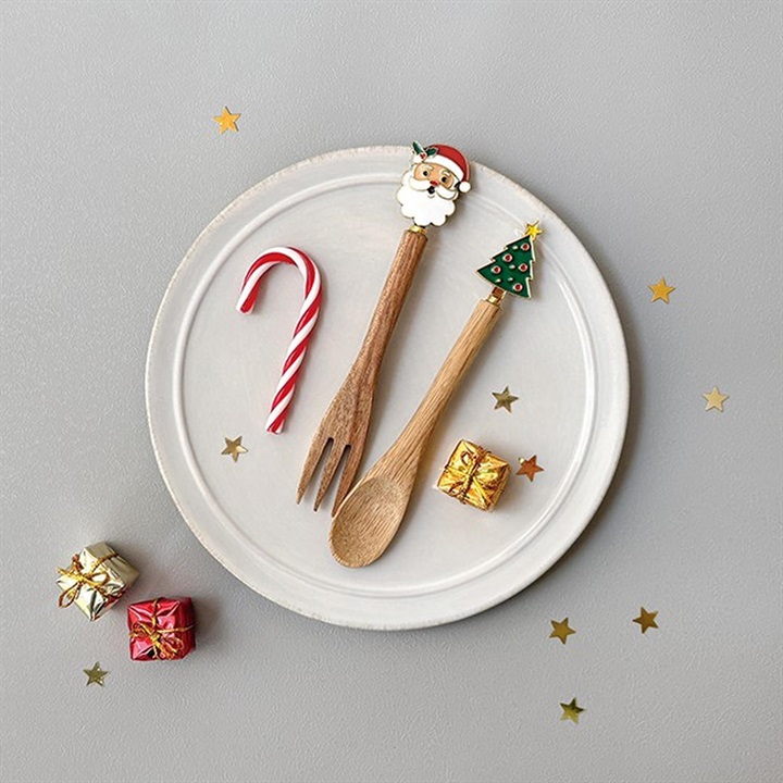 クリスマス気分を盛り上げてくれるかわいいモチーフのついた木製カトラリー。プチギフトやマグカップとセットでのギフトもおススメです。