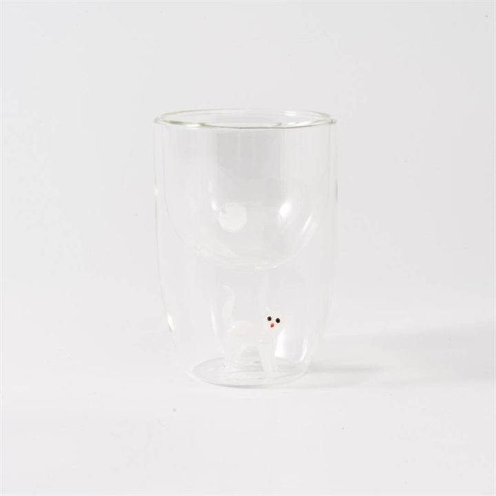 可愛いガラスモチーフを閉じ込めた、ダブルウォールグラスです。二重構造のグラスは断熱や保温、保冷効果に優れています。冷たい飲み物や温かい飲み物をゆっくりと味わえるのも特徴です。外側のガラスに温度変化が少ないので結露や火傷のリスクを減らすことができます。ガラスのモチーフがとても可愛いので、ギフトとしてもおすすめです。個性的な表情のアニマルたちが楽しめます。