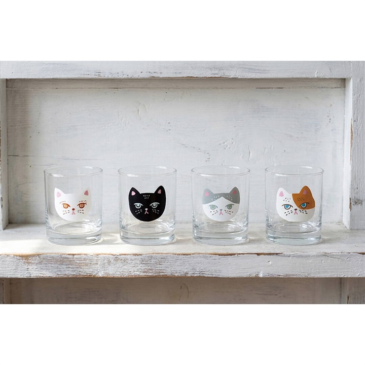 アンニュイな表情のネコが描かれたグラス。それぞれ個性的な猫たちに食卓が賑やかに。入れる飲み物でグラスの雰囲気が変わるのも楽しいです。