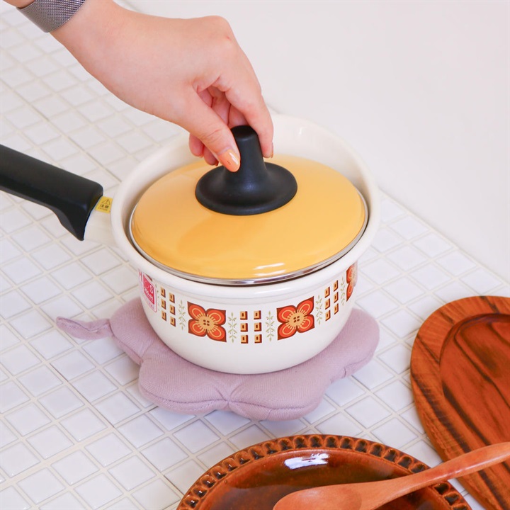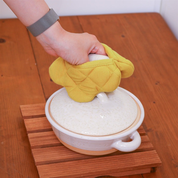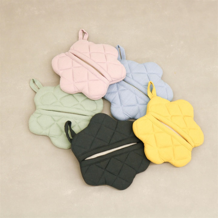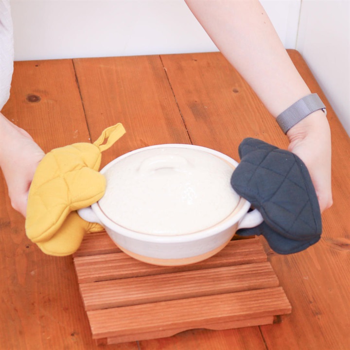 お花のかたちのかわいいミトン。ミトンとしてはもちろん鍋敷きとしても使える2WAY仕様です。 ▼プレゼント用のラッピングバッグはこちら