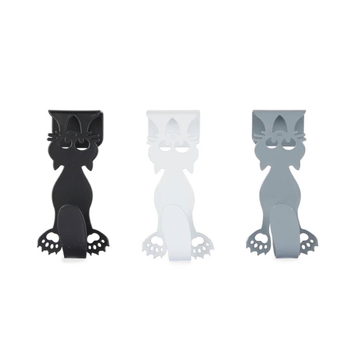 キッチンの引き出しや扉に掛けて使えるフックの3個セットです。黒猫と白猫のデザインが可愛らしく、タオルやミトンなどをかけるのに便利です。キッチン周りを楽しく整理整頓できます。