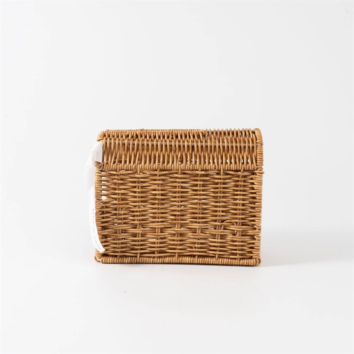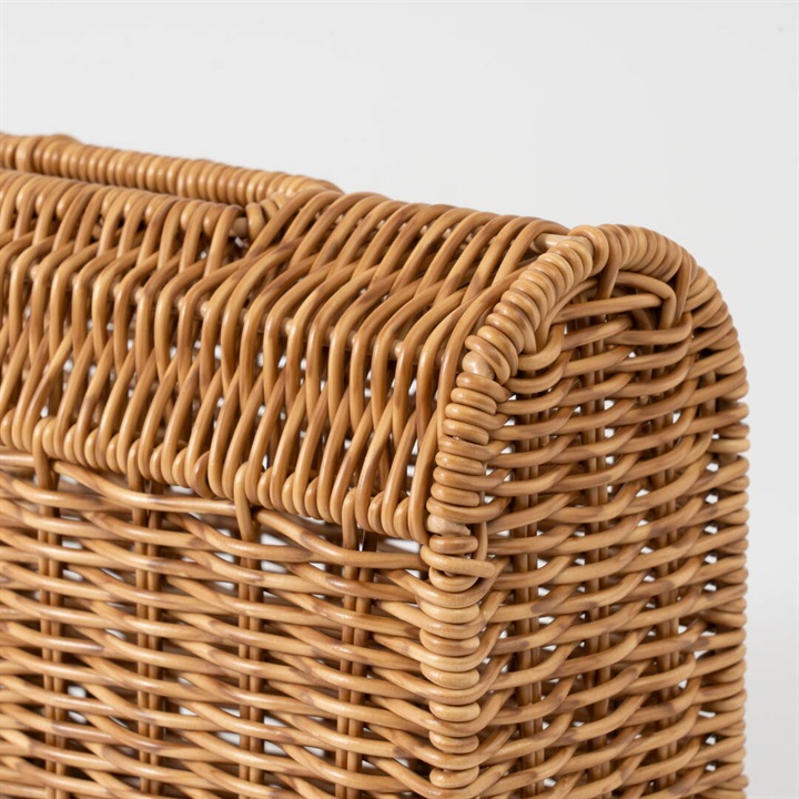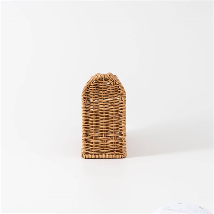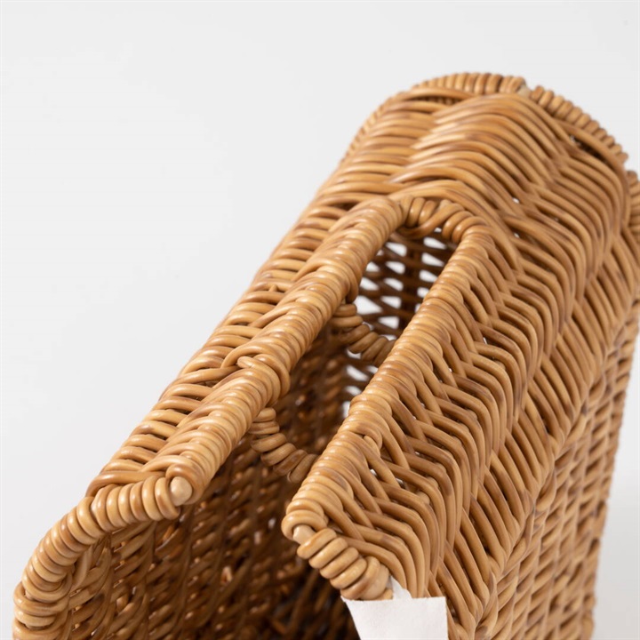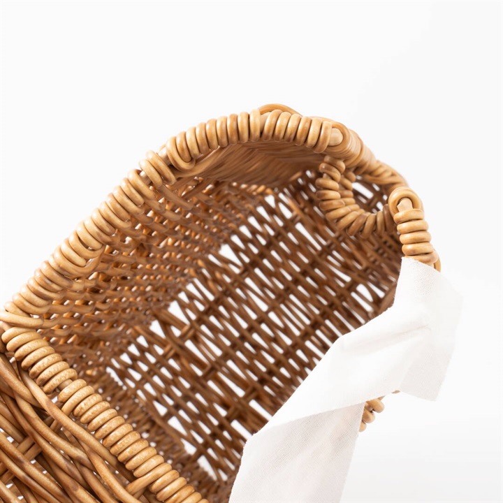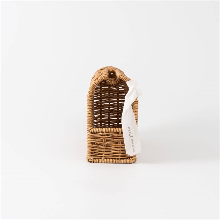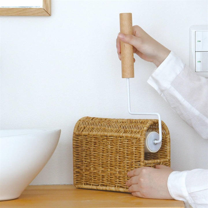 ハンディクリーナーを立てて収納できる、PPラタン製の専用スタンド。置き場所に困るハンディクリーナーを、生活感を出さずに隠して収納ができます。奥行き約9cmスリムなサイズ感と天然素材で編まれたような温かみを感じるかご編みの風合いが、お部屋に違和感なく溶け込んでくれます。取り出し・収納は横にスライドするだけの簡単仕様!スタンド内にはスペアテープを1本収納出来るスペースがあり、交換もスムーズに叶います。水に強いポリプロピレン・ポリエチレンチューブを使って編まれているので、お手洗いやバスルームなど、水を扱う場所でも安心。同シリーズで揃えてご使用いただくと統一感が出ておすすめです。