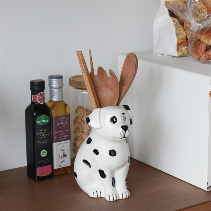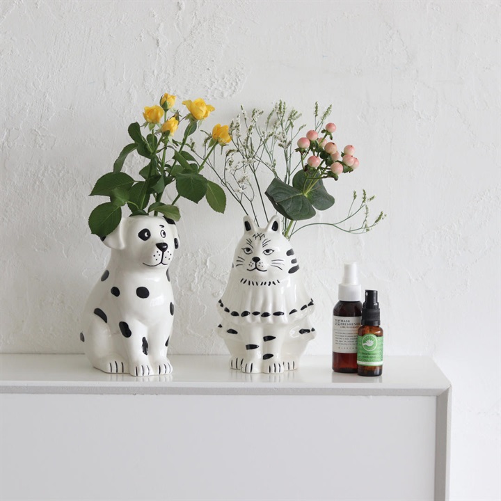 ネコちゃんとワンちゃんをモチーフにした磁器のツールスタンド。